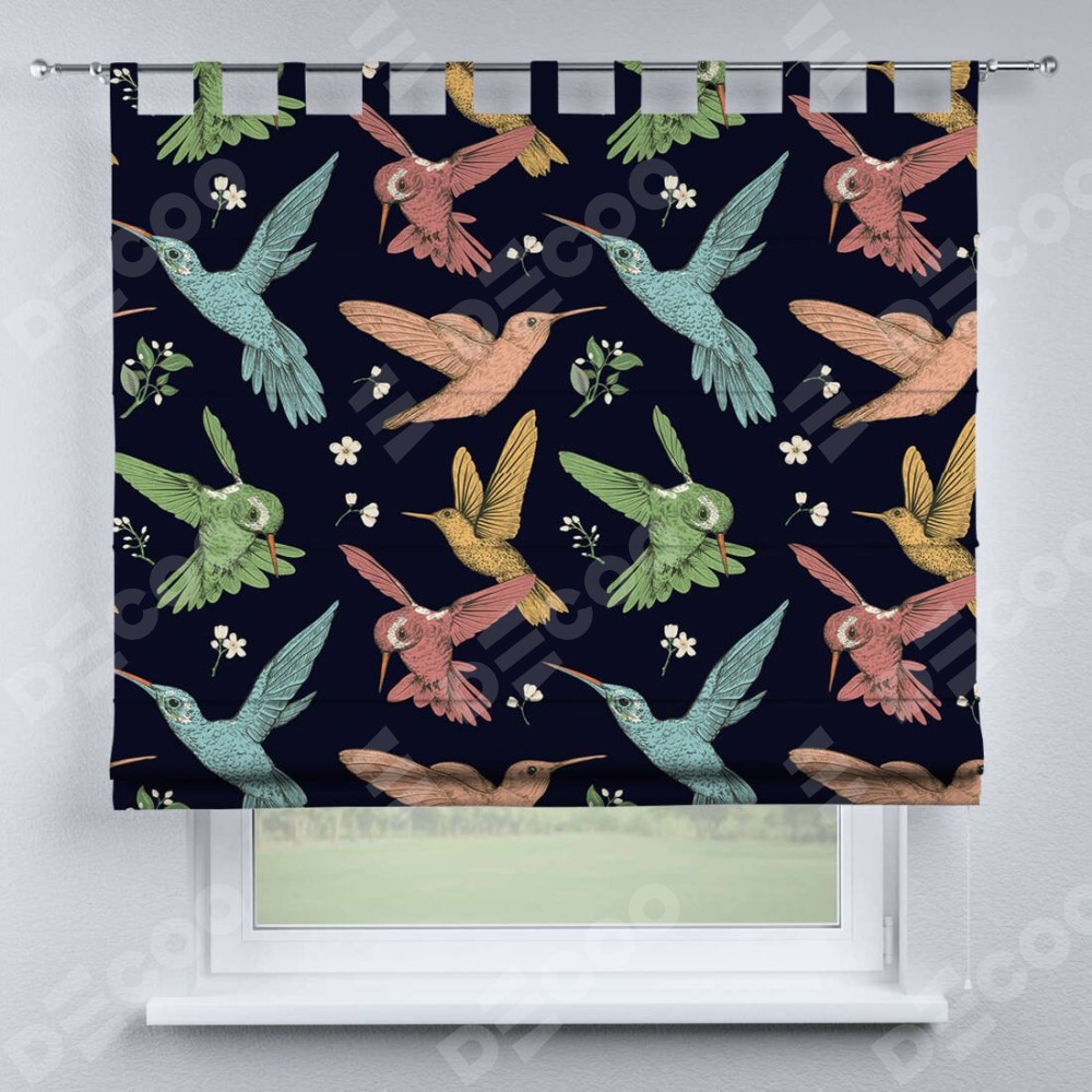 Римская штора «Кортин» на петлях «Птицы и цветы»