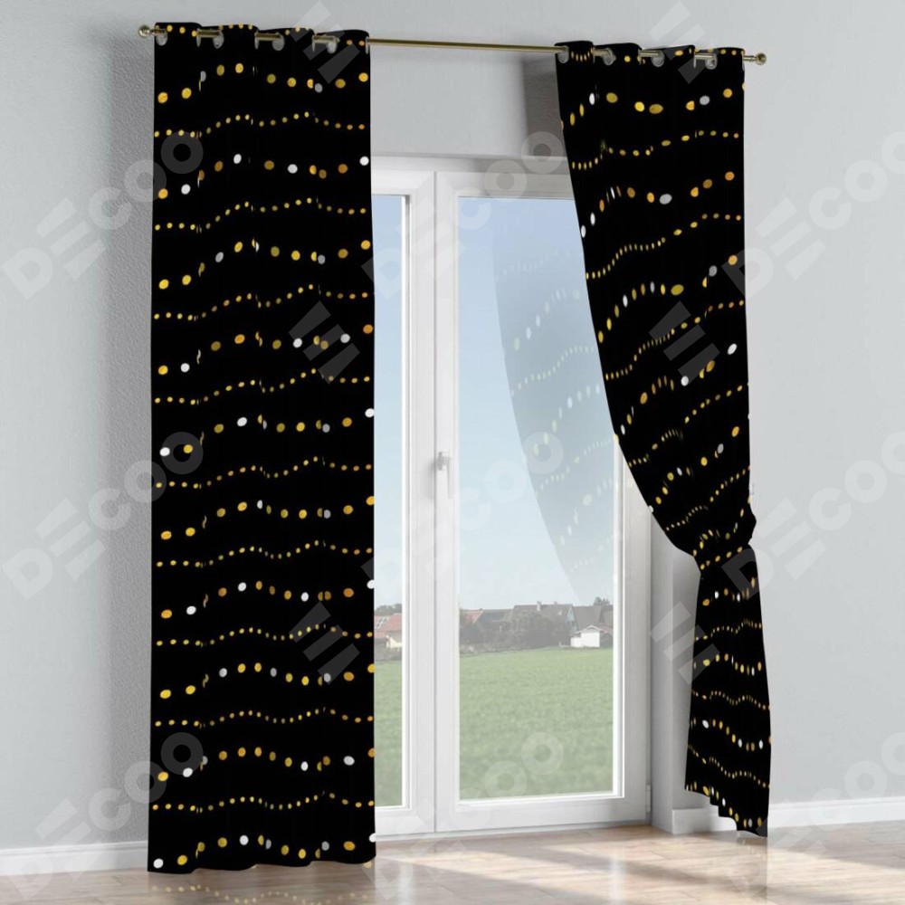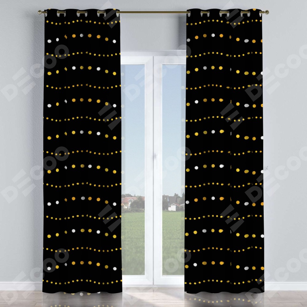 Комплект прямых штор, от производителя «Cortin», пошиты из ткани блэкаут с нанесением сублимационной печати «Яркие огоньки». Данная модель пошита на люверсах, комплектуется на выбор круглым карнизом и подходит для монтажа на стену или потолок. Прямые шторы на люверсах шьются по стандарту с коэффициентом 1/2 (на 100 см. ширины проёма 200 см. ширины ткани), отличительным преимуществом данной модели является простой способ монтажа. Достаточно повесить ее на трубу и штора готова!