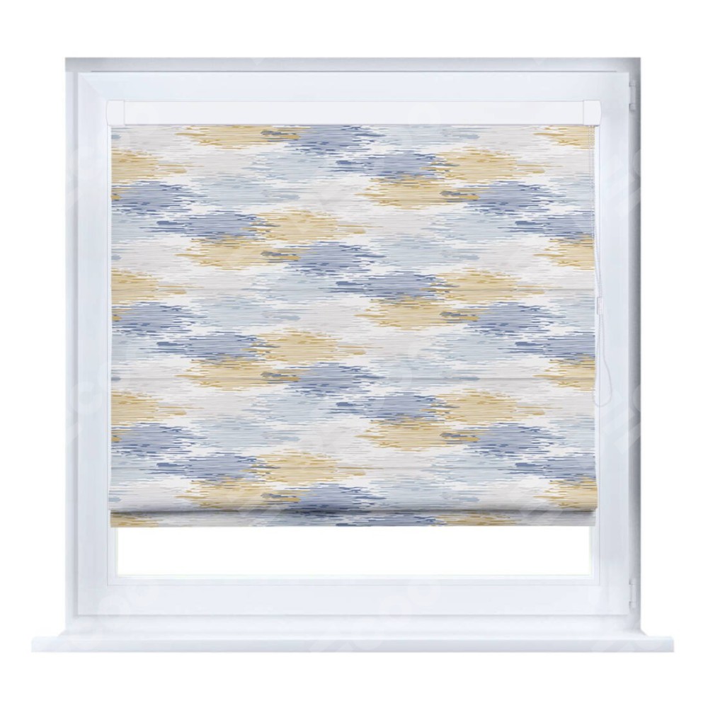 Римская штора производителя «Cortin», устанавливается на створку окна, пошита из ткани блэкаут с нанесением сублимационной печати «Полосатая волна». Штора шьётся по индивидуальным размерам, для данного типа римской шторы возможная ширина от 35 до 150 см., высота до 250 см.