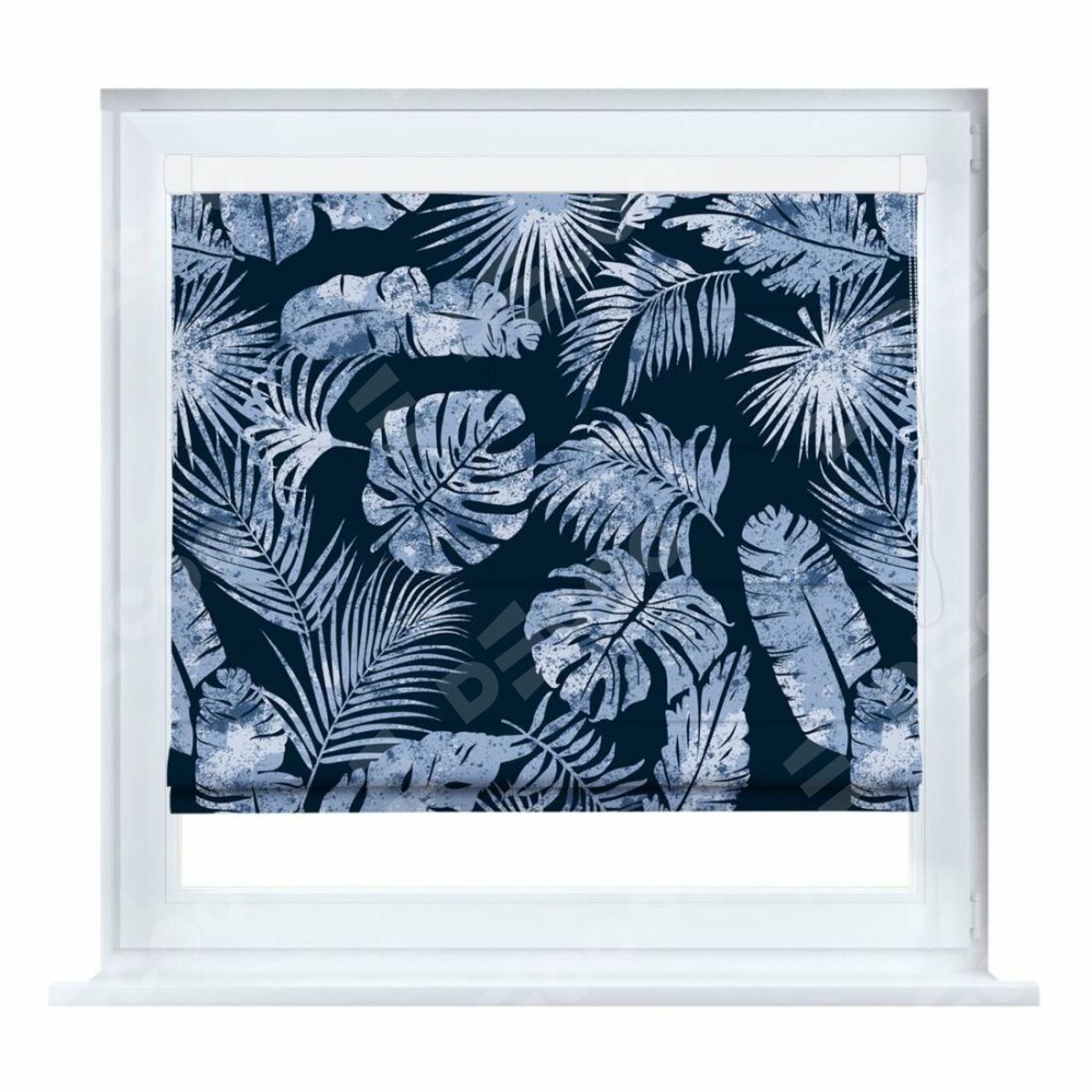 Римская штора производителя «Cortin», устанавливается на створку окна, пошита из ткани блэкаут с нанесением сублимационной печати «Тропическая ночь». Штора шьётся по индивидуальным размерам, для данного типа римской шторы возможная ширина от 35 до 150 см., высота до 250 см.
