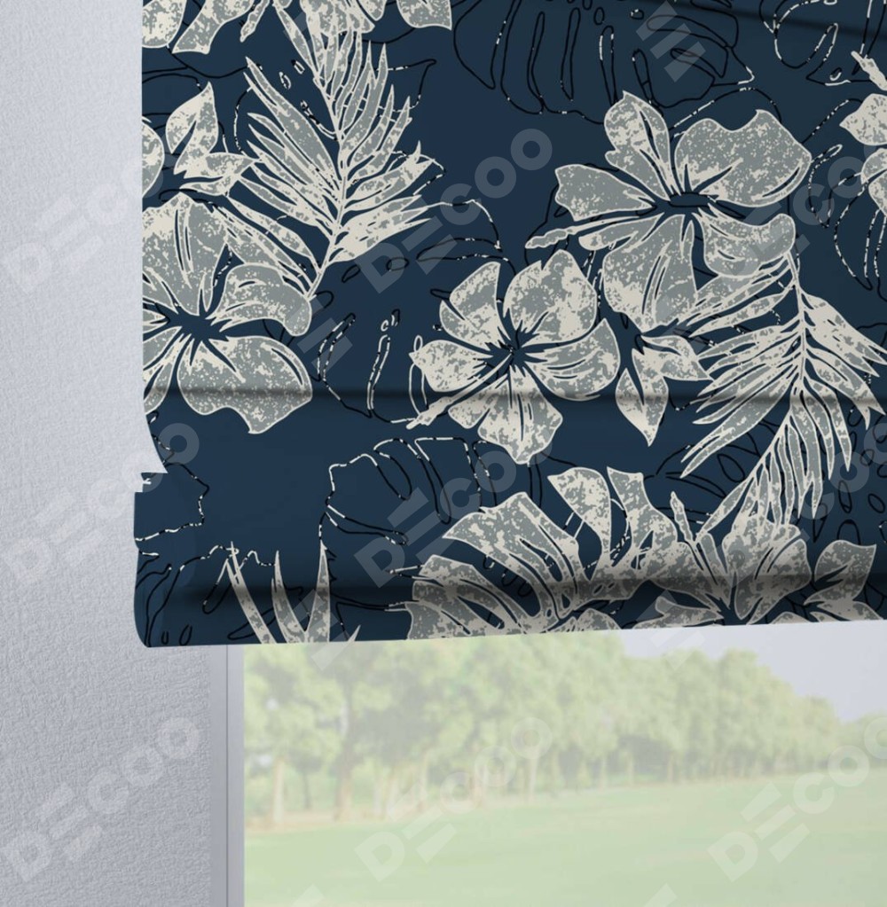 Цвет материала: В цветочек, Синий, С принтом, С рисунком, Тёмные