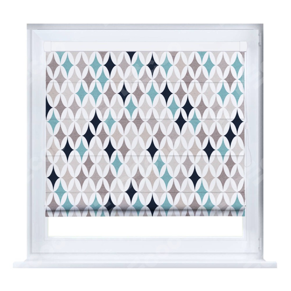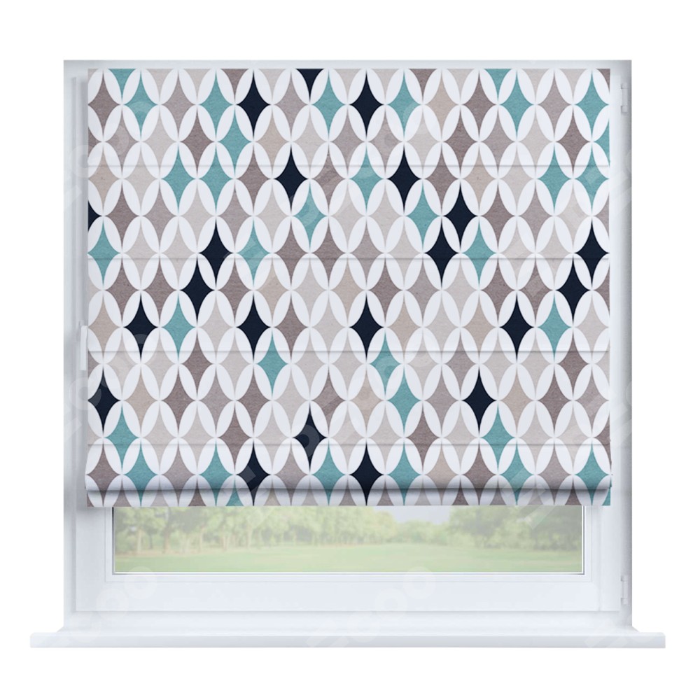 Римская штора производителя «Cortin», устанавливается на створку окна, пошита из ткани блэкаут с нанесением сублимационной печати «Орнамент кристалл». Штора шьётся по индивидуальным размерам, для данного типа римской шторы возможная ширина от 35 до 150 см., высота до 250 см.