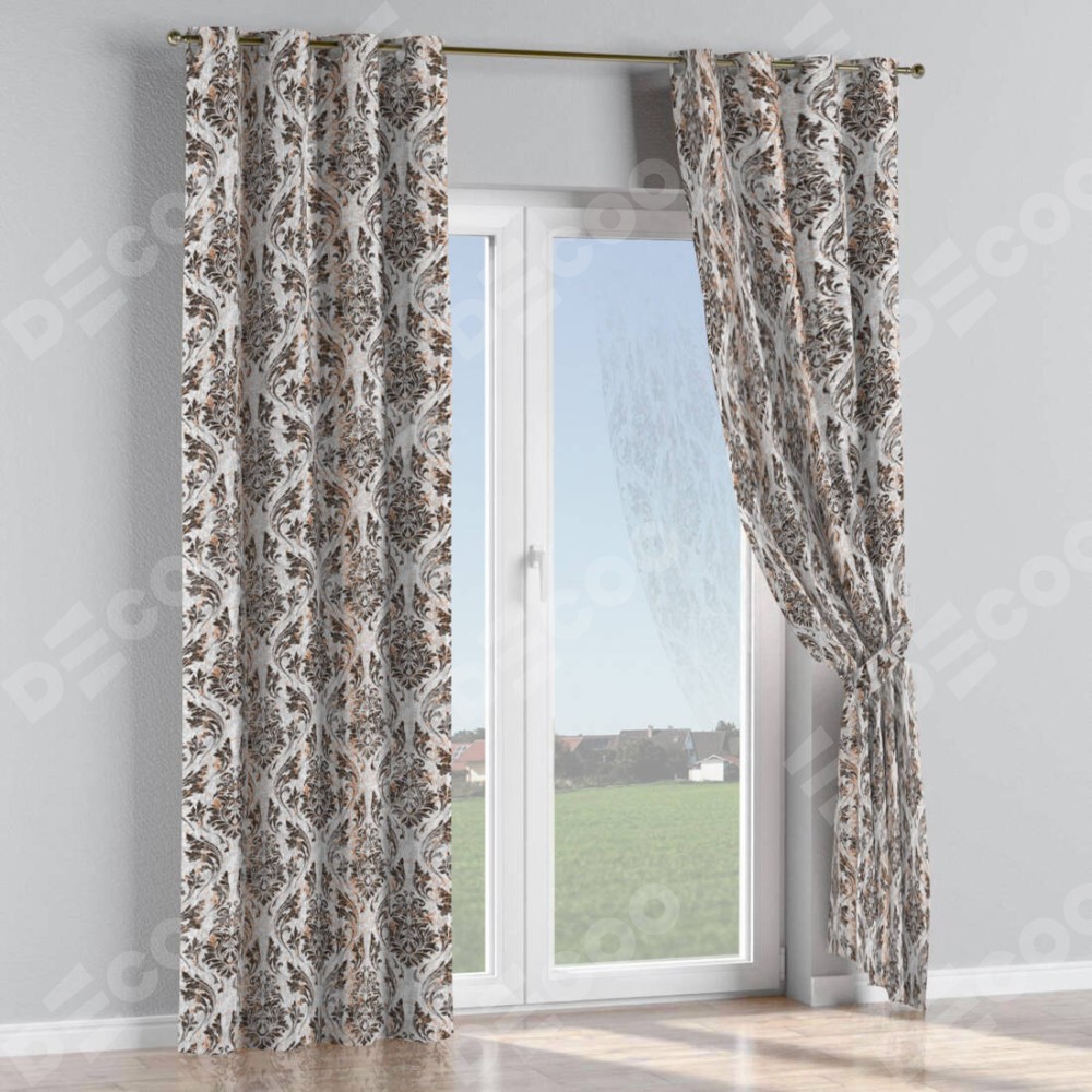 Комплект прямых штор, от производителя «Cortin», пошиты из ткани блэкаут с нанесением сублимационной печати «Дамаск тёмный». Данная модель пошита на люверсах, комплектуется на выбор круглым карнизом и подходит для монтажа на стену или потолок. Прямые шторы на люверсах шьются по стандарту с коэффициентом 1/2 (на 100 см. ширины проёма 200 см. ширины ткани), отличительным преимуществом данной модели является простой способ монтажа. Достаточно повесить ее на трубу и штора готова!