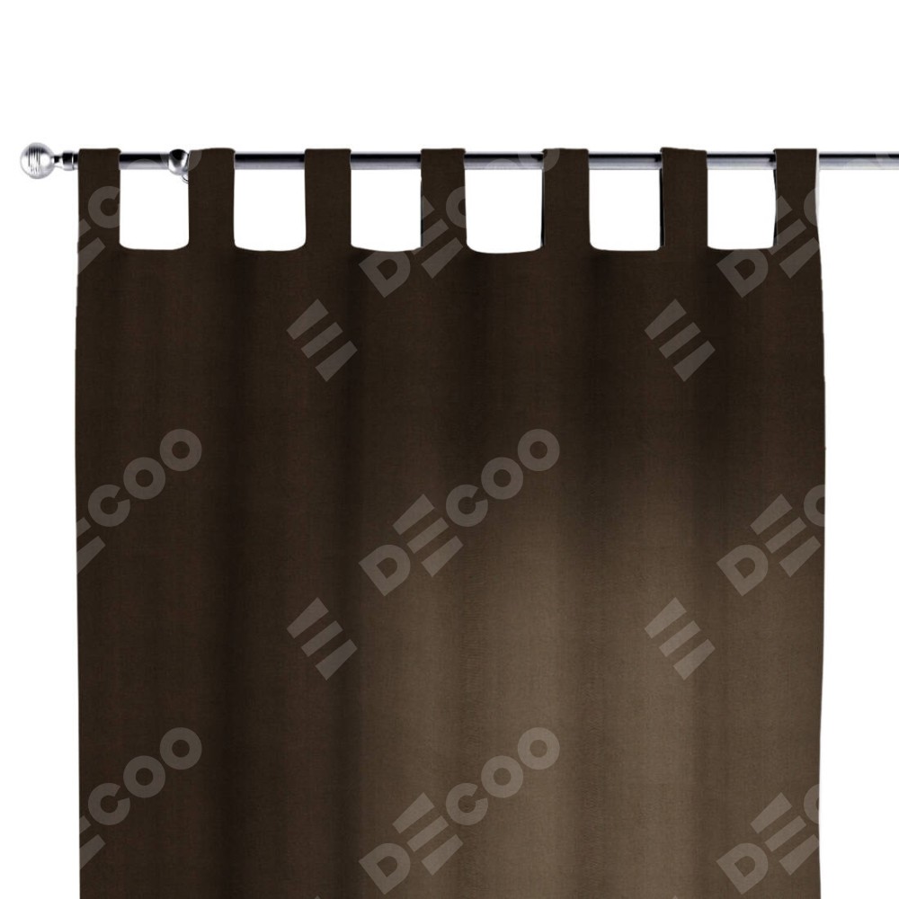 Комплект прямых штор, от производителя «Cortin», пошиты из ткани вельвет тёмно-коричневый, артикул ткани 30991. Данная модель пошита на петлях, комплектуется на выбор круглым карнизом и подходит для монтажа на стену или потолок. Прямые шторы на петлях шьются по стандарту с коэффициентом 1/2 (на 100 см. ширины проёма 200 см. ширины ткани), отличительным преимуществом данной модели является простой способ монтажа. Достаточно повесить ее на трубу и штора готова!