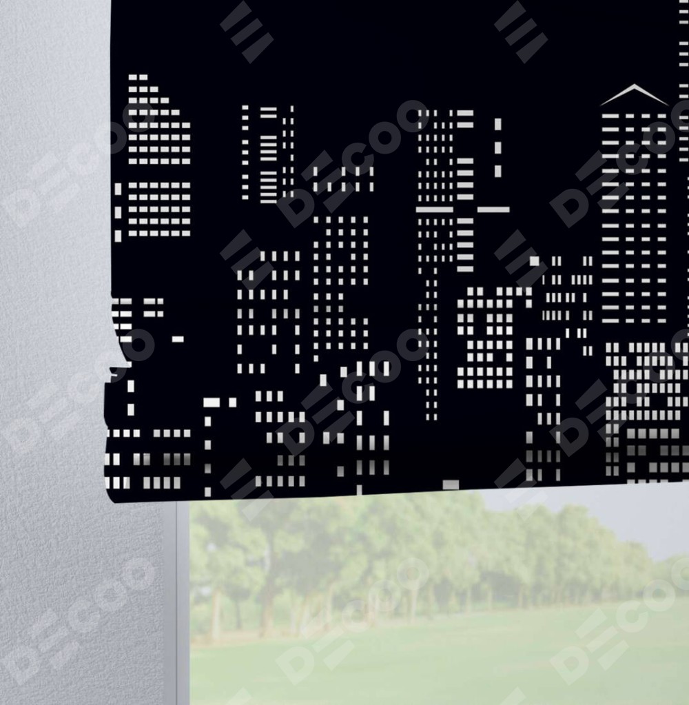 Римская штора производителя «Cortin», используется для проёма, пошита из ткани блэкаут с нанесением сублимационной печати «Ночной город». Данная модель пошита на петлях, комплектуется на выбор круглым карнизом и подходит для монтажа на стену. Римская штора на петлях имеет простую систему регулировки высоты, отличительным преимуществом данной модели является простой способ монтажа. Достаточно повесить ее на трубу и штора готова!