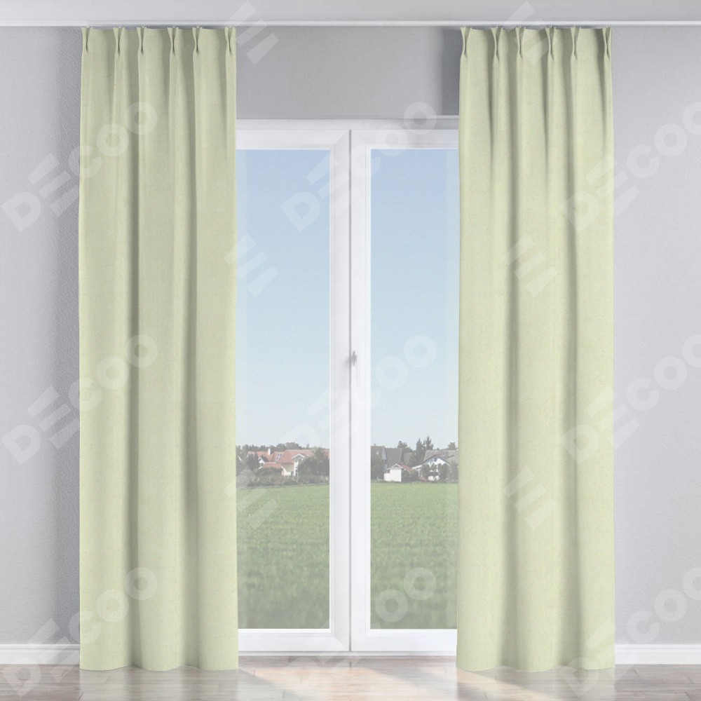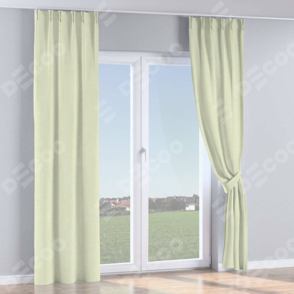 Комплект прямых штор, от производителя «Cortin», пошиты из ткани блэкаут однотонный сливочный, артикул ткани 6668−02. С изнаночной стороны в верхней части штор пристрачивается шторная лента с декоративными складками «Кустик». Для создания элегантных складок прямые шторы шьются по стандарту с коэффициентом 1:2 (на 100 см. ширины проёма 200 см. ширины ткани).