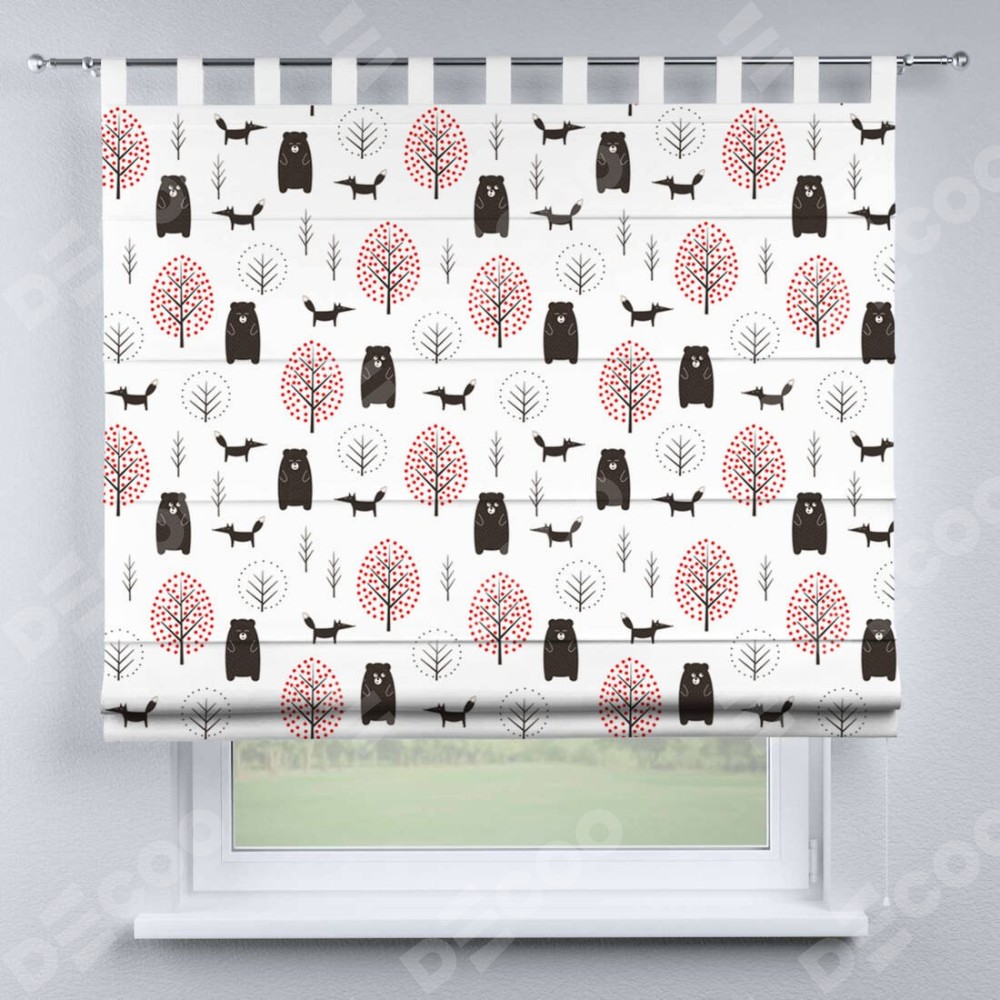 Римская штора производителя «Cortin», используется для проёма, пошита из ткани блэкаут с нанесением сублимационной печати «Сканди лес». Данная модель пошита на петлях, комплектуется на выбор круглым карнизом и подходит для монтажа на стену. Римская штора на петлях имеет простую систему регулировки высоты, отличительным преимуществом данной модели является простой способ монтажа. Достаточно повесить ее на трубу и штора готова!