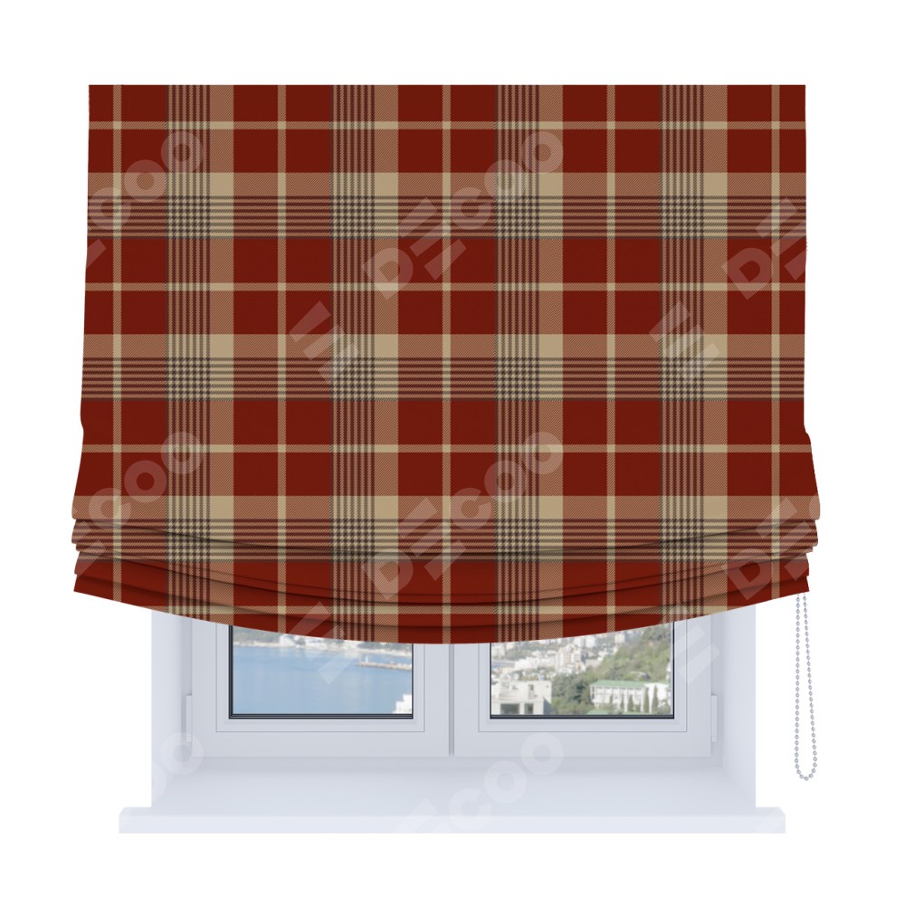 Римская штора Soft производителя «Cortin», используется для проёма, пошита из ткани блэкаут с нанесением сублимационной печати «Бежево-бордовая клетка». Имеет универсальный механизм и подходит для монтажа: на потолок, на стену и в нишу. В отличие от стандартных римских штор, римская штора Soft не имеет горизонтальных вставок и нижнего отвеса. Это позволяет ткани произвольно драпироваться в свободные мягкие складки.