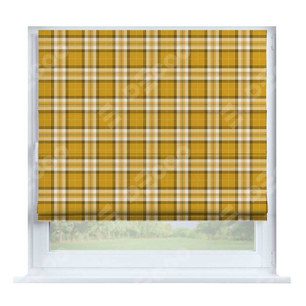 Римская штора производителя «Cortin», устанавливается на створку окна, пошита из ткани блэкаут с нанесением сублимационной печати «Желто-горчичная клетка». Штора шьётся по индивидуальным размерам, для данного типа римской шторы возможная ширина от 35 до 150 см., высота до 250 см.