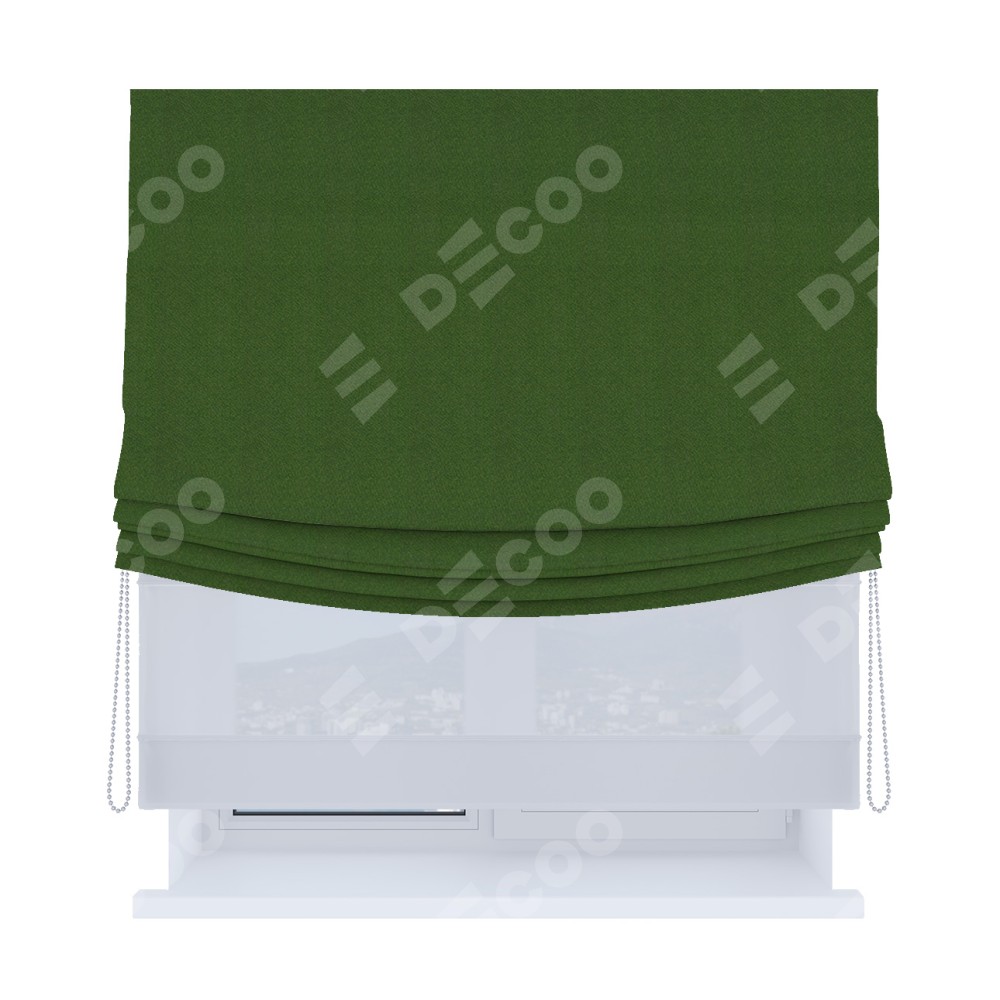 Римская штора «Кортин», день-ночь с мягкими складками, блэкаут однотонный зелёный перламутр