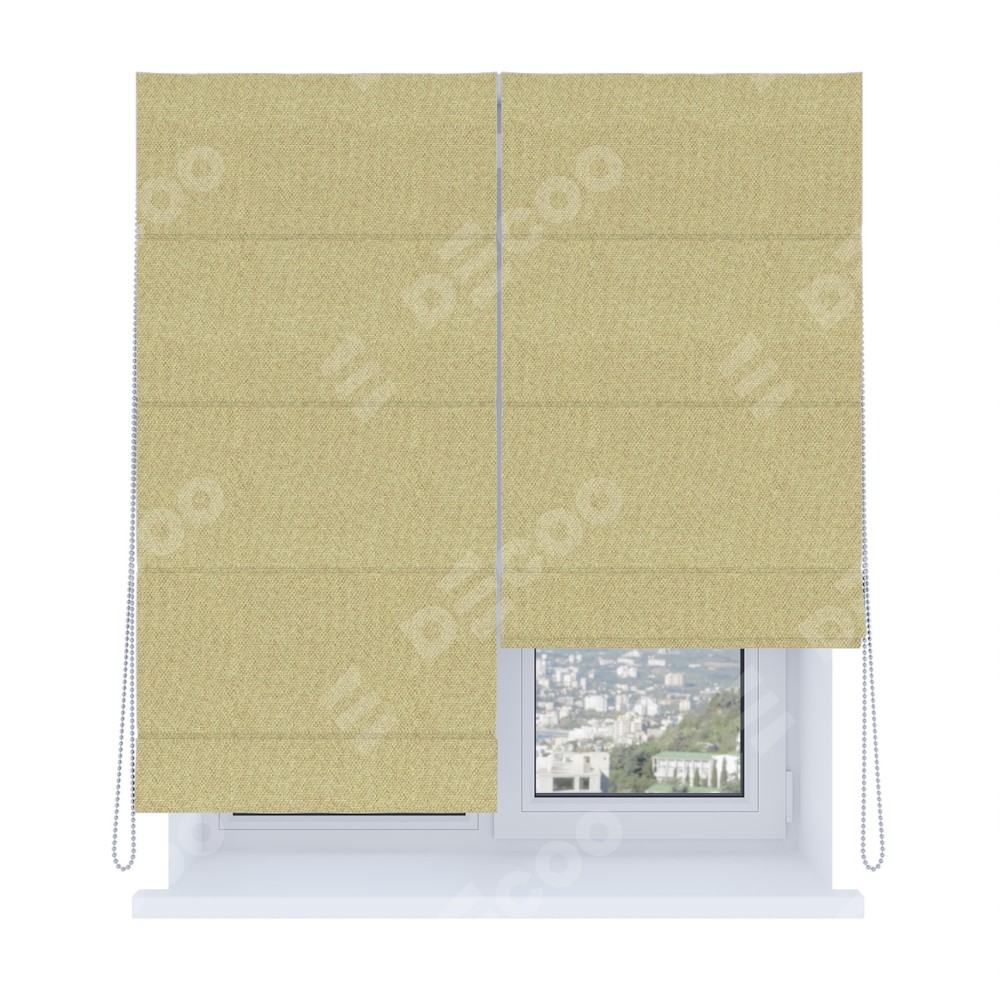 Римская штора производителя «Cortin», используется для проёма, пошита из ткани лён димаут песочный, артикул ткани 16239. Имеет универсальный механизм и подходит для монтажа: на потолок, на стену и в нишу. Удобное управление каждой шторой отдельно.