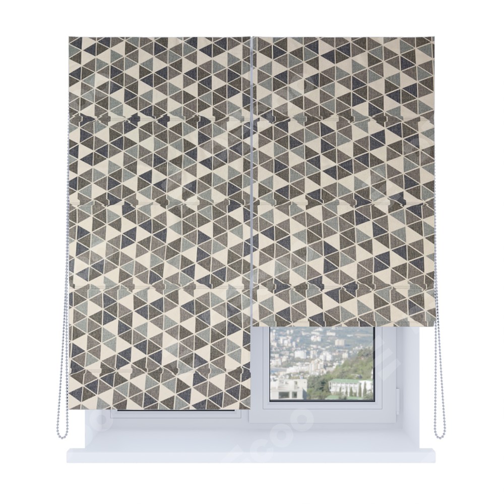 Римская штора «Кортин», система «Комфорт», димаут «Треугольники синие»