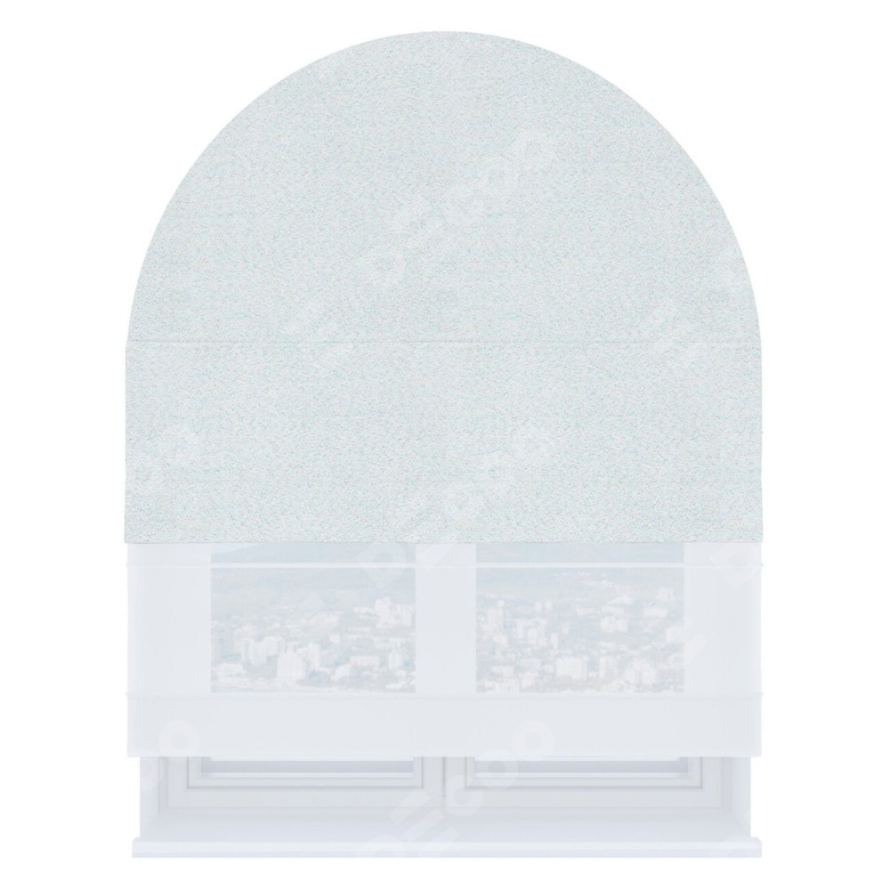 Римская штора день-ночь производителя «Cortin», используется для арочного проёма, пошита из двух полотен, с лицевой стороны блэкаут однотонный дымчато-белый артикул 101, вторая ткань тюль (по стандарту комплектуется тюль белого цвета артикул V-01). Штора шьётся по индивидуальным размерам, для данного типа римской шторы возможная ширина от 60 до 300 см. Удобное управление каждой шторой отдельно.