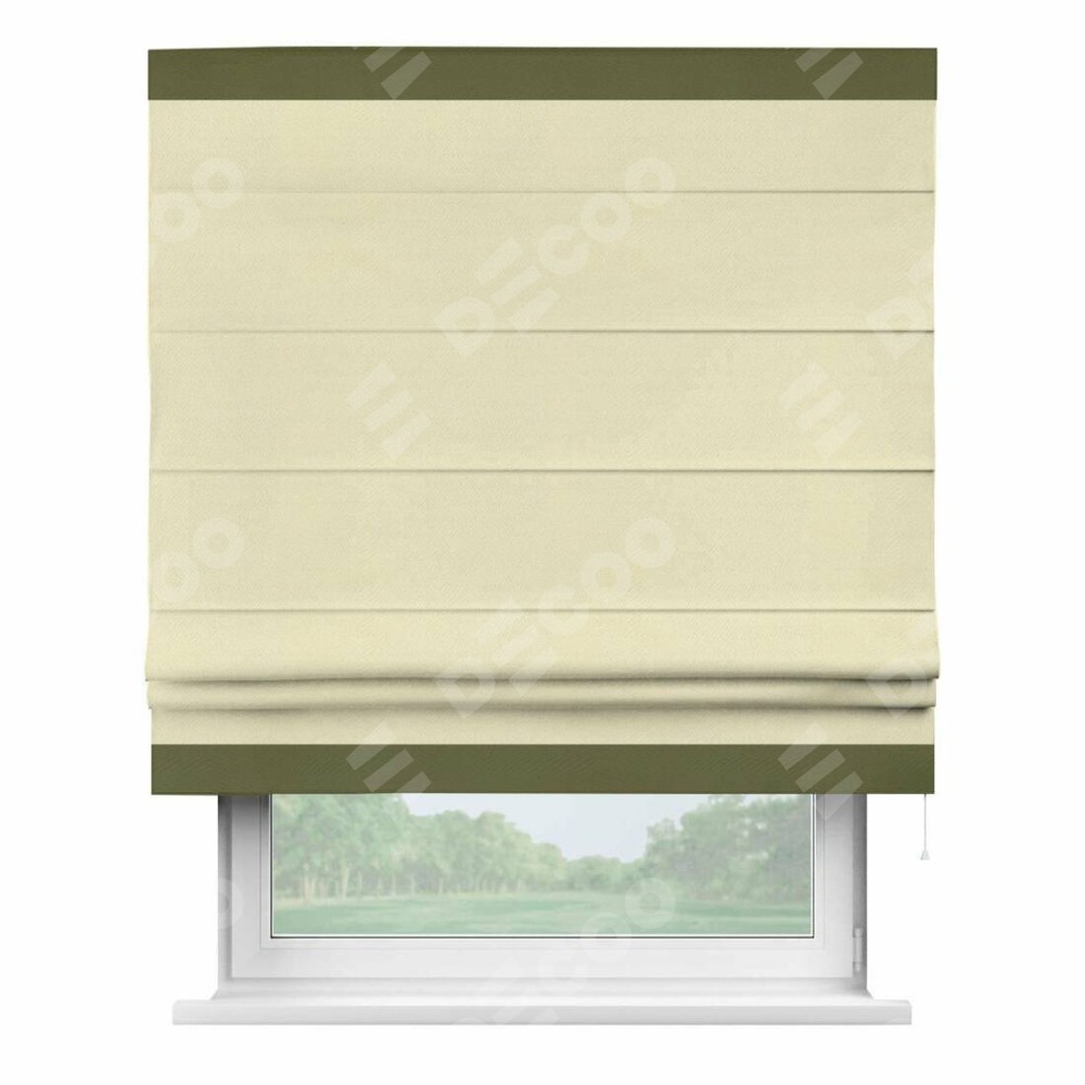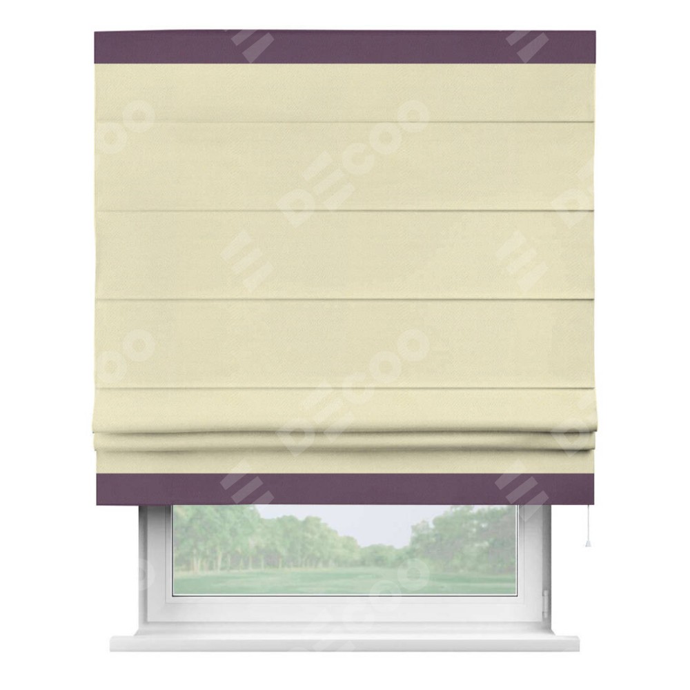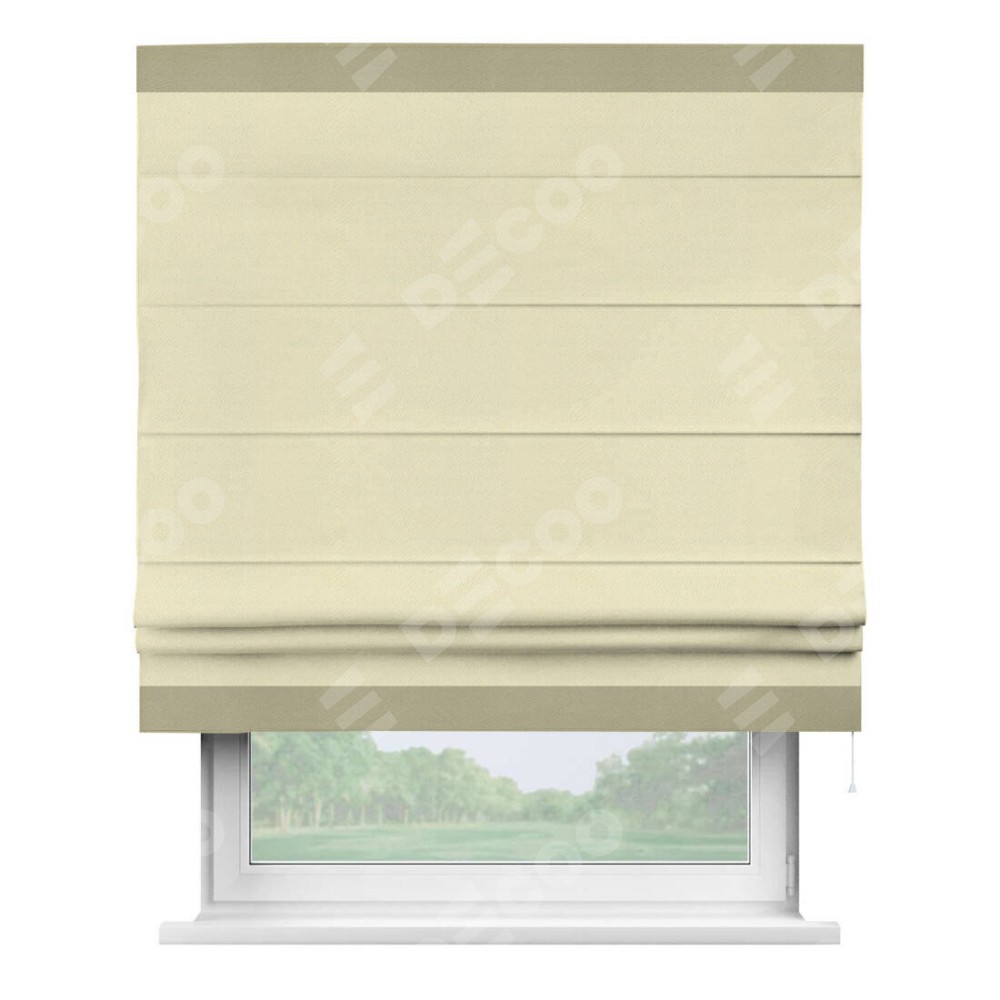 Римская штора производителя «Cortin», используется для проёма, пошита из ткани блэкаут однотонный бежевый, артикул ткани 88283. Отделка шторы кантом «Горизонт», ткань для канта используется из блэкаута однотонного разной расцветки на выбор. Имеет универсальный механизм и подходит для монтажа: на потолок, на стену и в нишу.