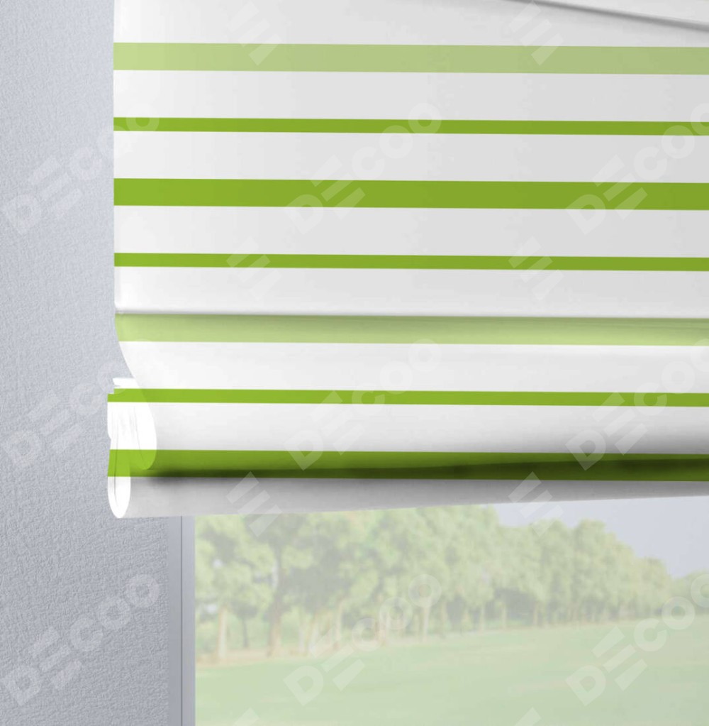 Римская штора «Кортин» на петлях «Зелёные горизонтальные полоски»