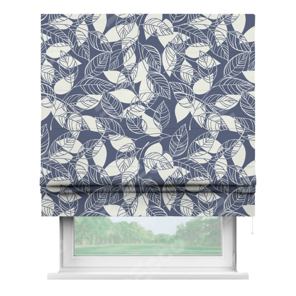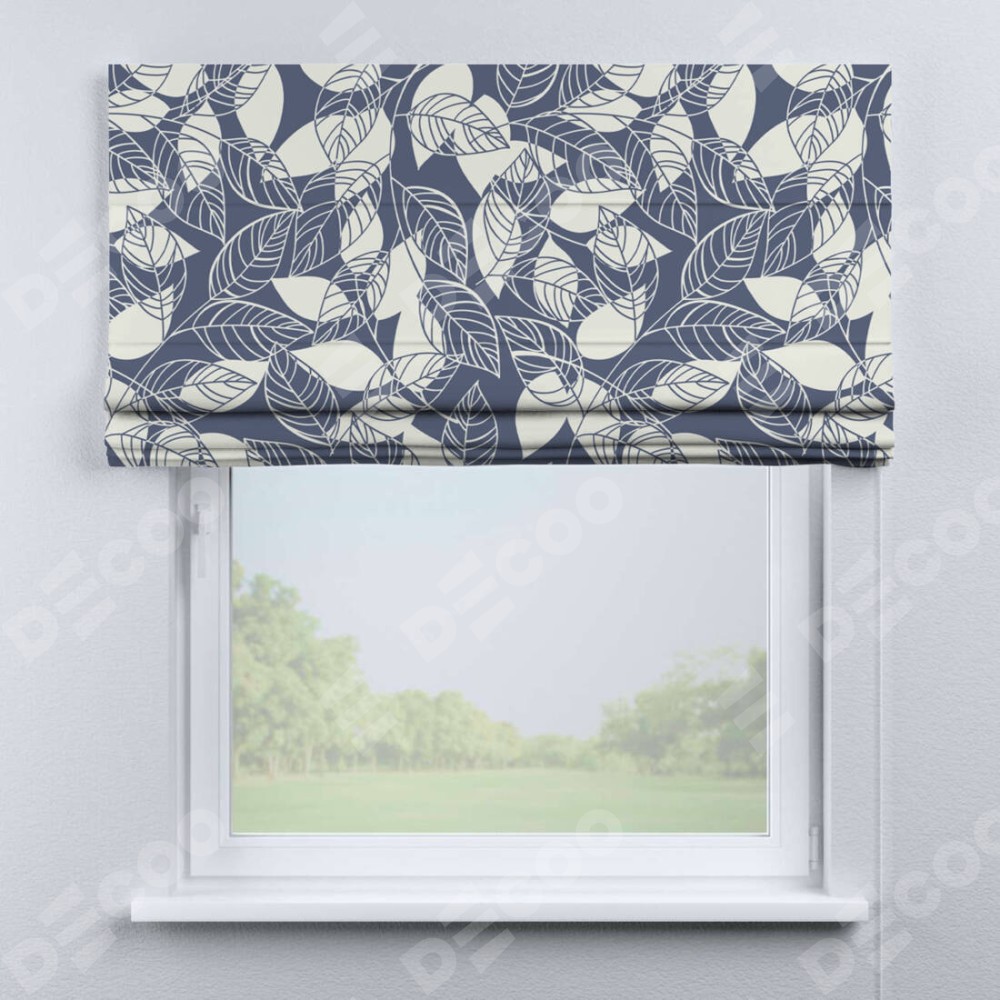Римская штора производителя «Cortin», используется для проёма, пошита из ткани блэкаут с нанесением сублимационной печати «Прозрачные листья». Имеет универсальный механизм и подходит для монтажа: на потолок, на стену и в нишу.