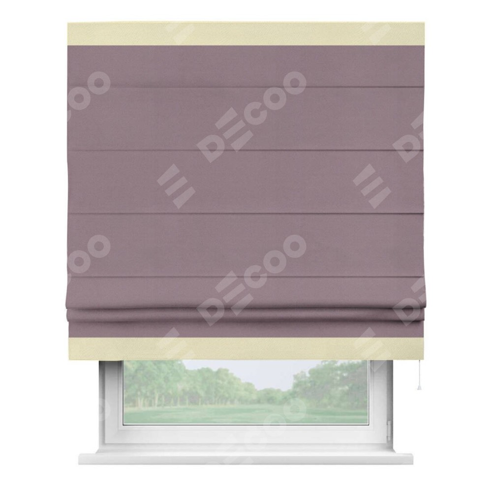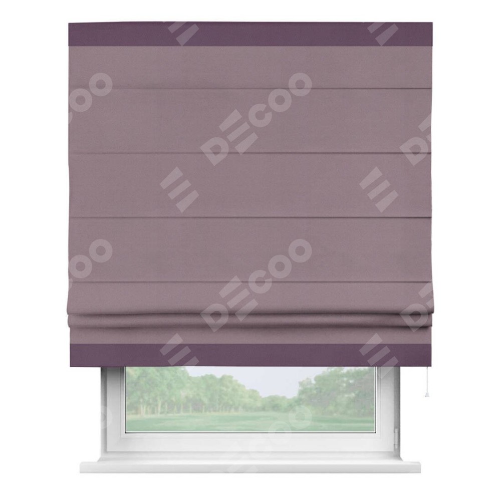 Римская штора производителя «Cortin», используется для проёма, пошита из ткани блэкаут однотонный брусника, артикул ткани 88302. Отделка шторы кантом «Горизонт», ткань для канта используется из блэкаута однотонного разной расцветки на выбор. Имеет универсальный механизм и подходит для монтажа: на потолок, на стену и в нишу.