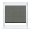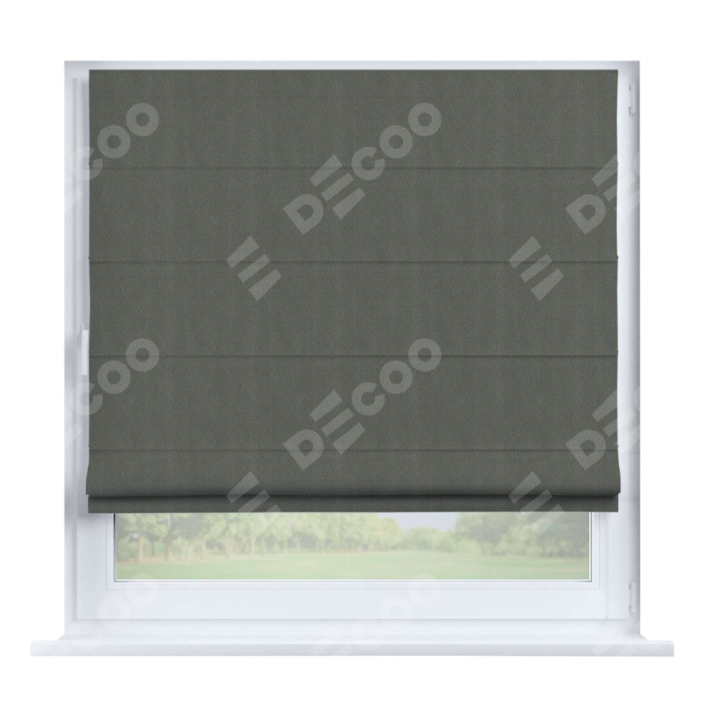Римская штора производителя «Cortin», устанавливается на створку окна, пошита из ткани блэкаут однотонный тёмно-серый, артикул 29332−1. Штора шьётся по индивидуальным размерам, для данного типа римской шторы возможная ширина от 35 до 150 см., высота до 250 см.