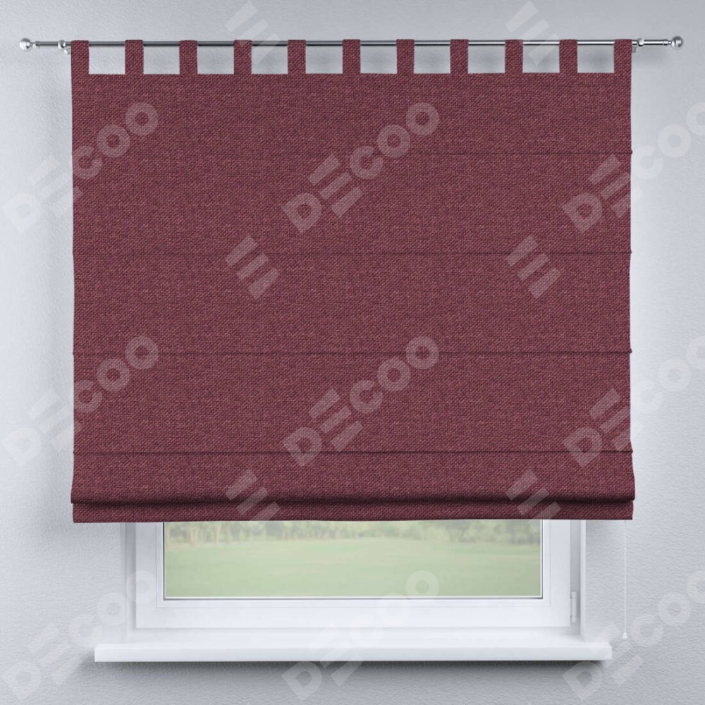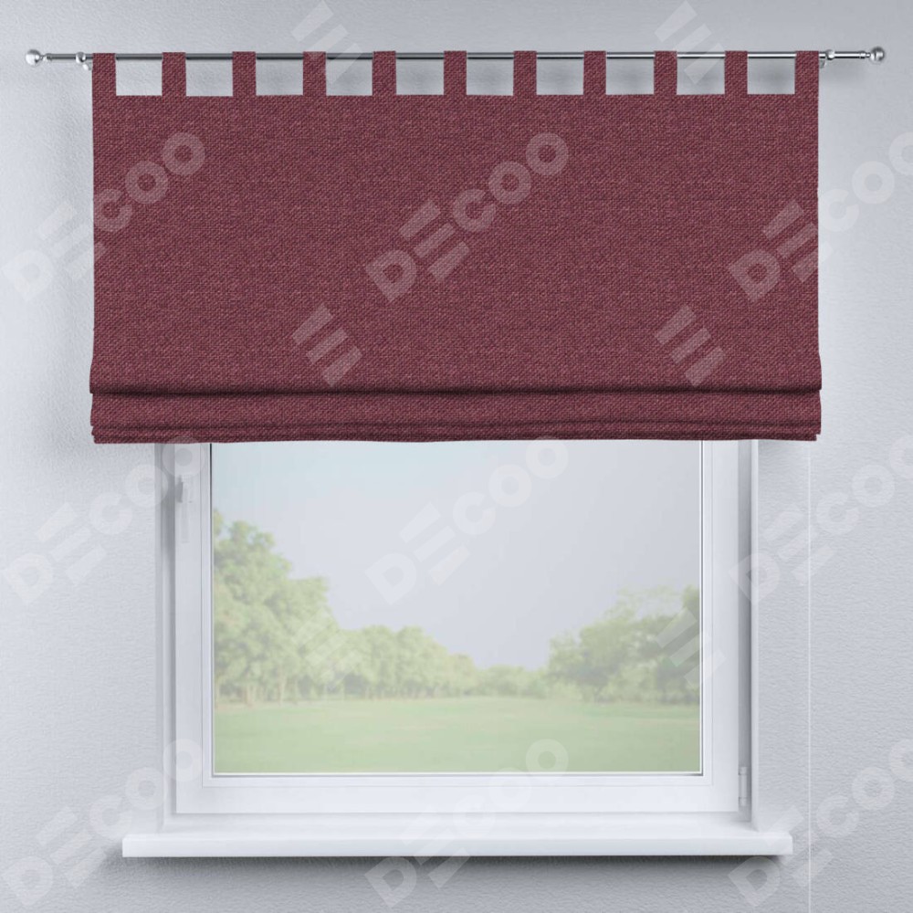 Римская штора производителя «Cortin», используется для проёма, пошита из ткани лён димаут марсала, артикул ткани 1602. Данная модель пошита на петлях, комплектуется на выбор круглым карнизом и подходит для монтажа на стену. Римская штора на петлях имеет простую систему регулировки высоты, отличительным преимуществом данной модели является простой способ монтажа. Достаточно повесить ее на трубу и штора готова!