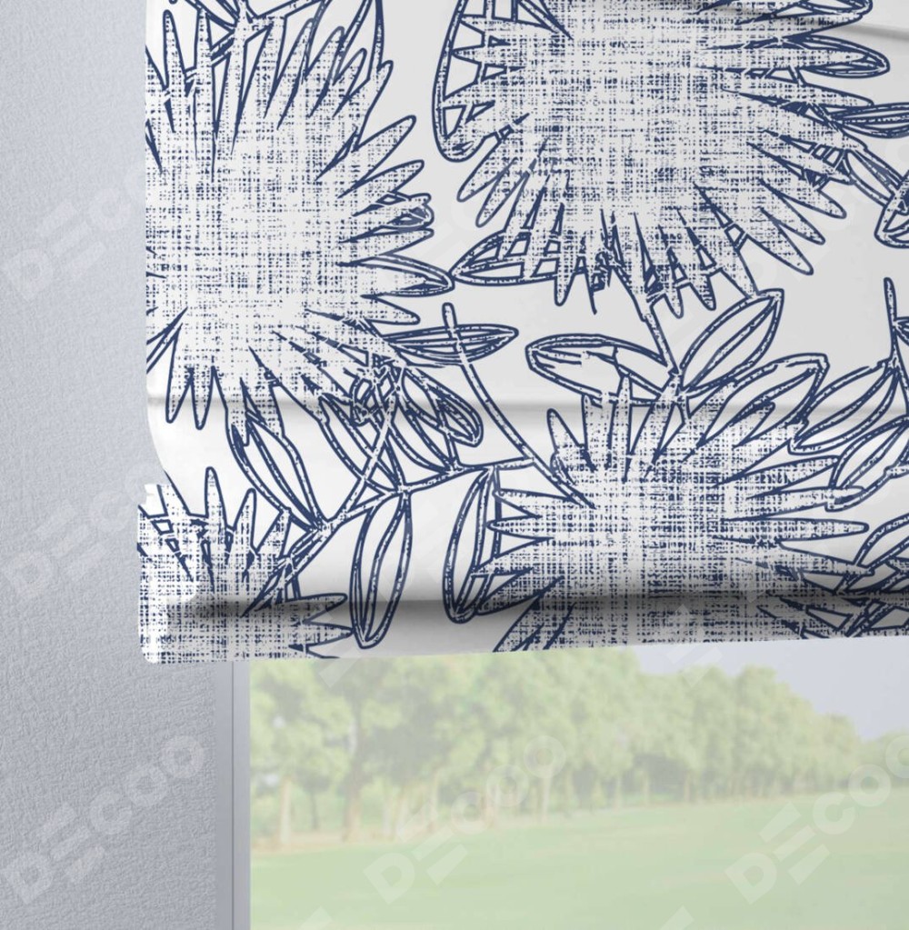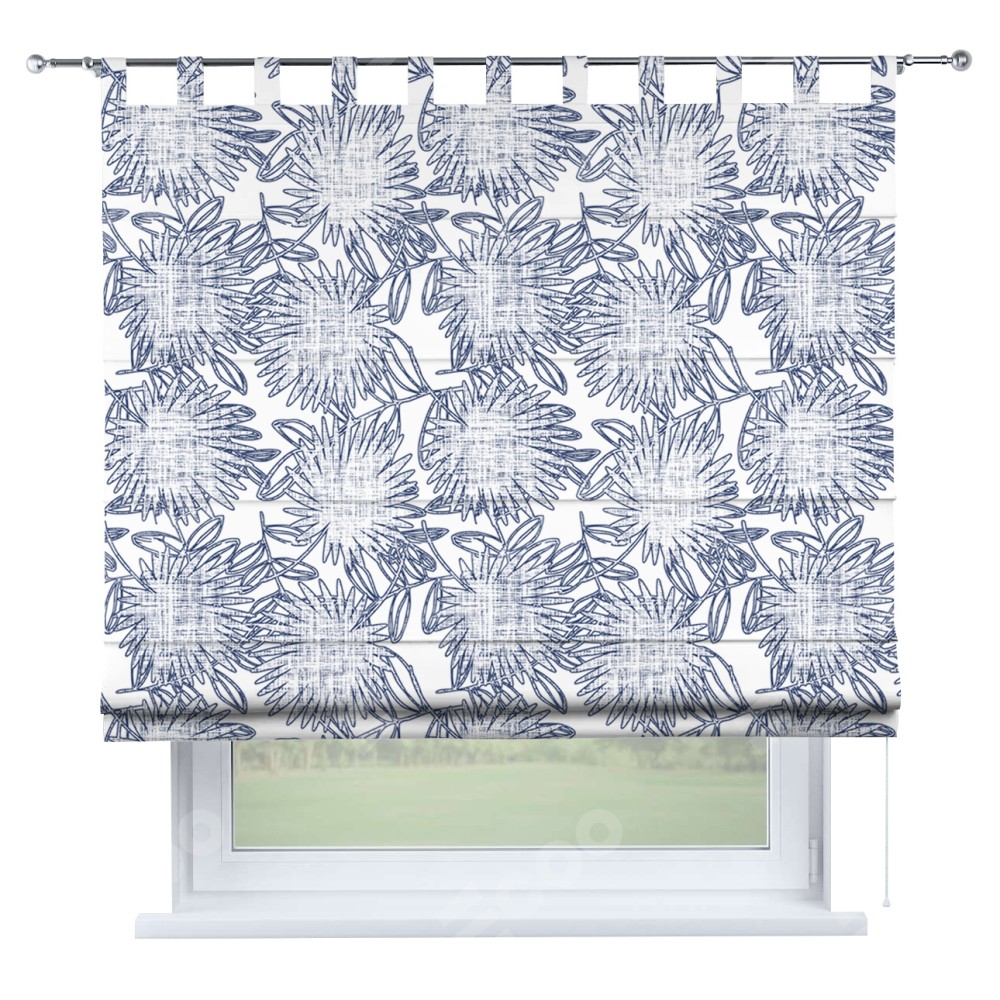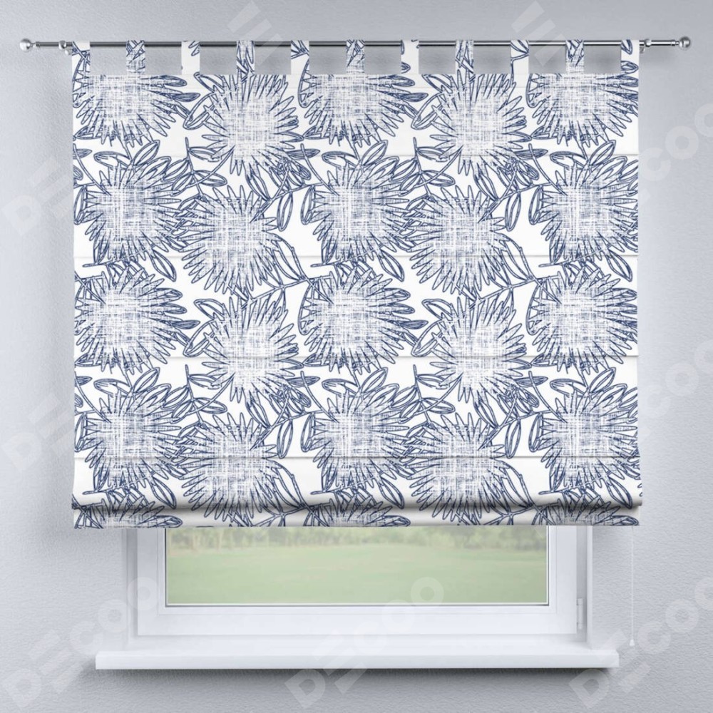 Римская штора производителя «Cortin», используется для проёма, пошита из ткани блэкаут с нанесением сублимационной печати «Синий букет». Данная модель пошита на петлях, комплектуется на выбор круглым карнизом и подходит для монтажа на стену. Римская штора на петлях имеет простую систему регулировки высоты, отличительным преимуществом данной модели является простой способ монтажа. Достаточно повесить ее на трубу и штора готова!