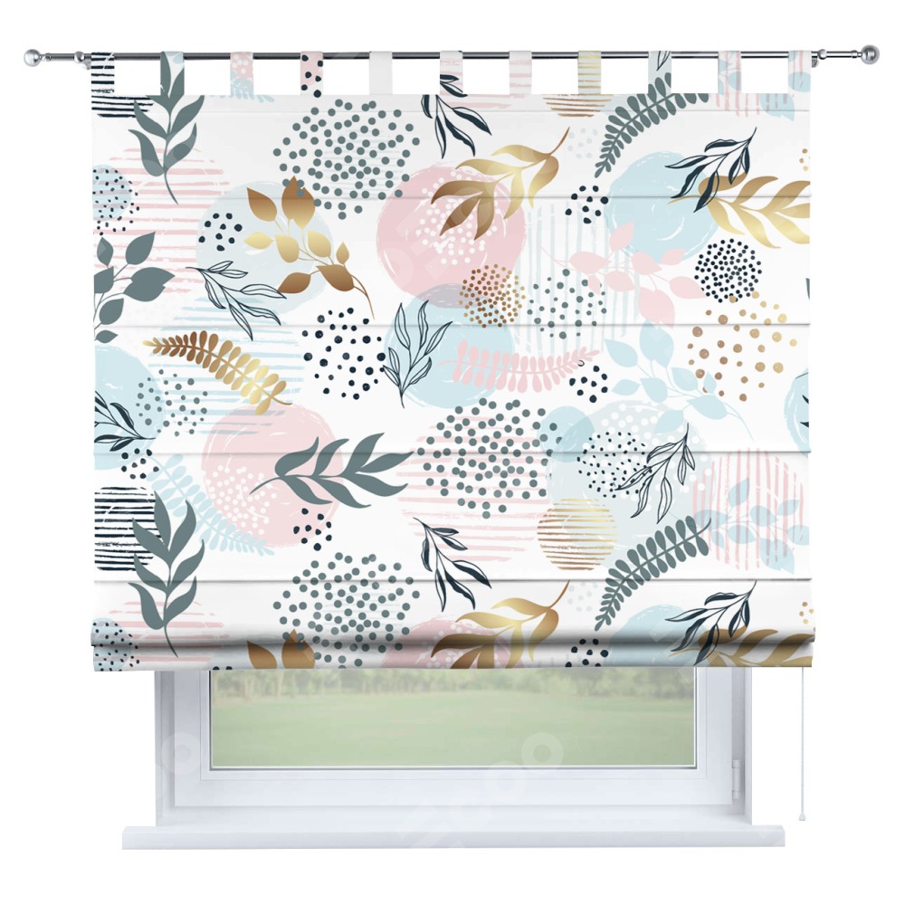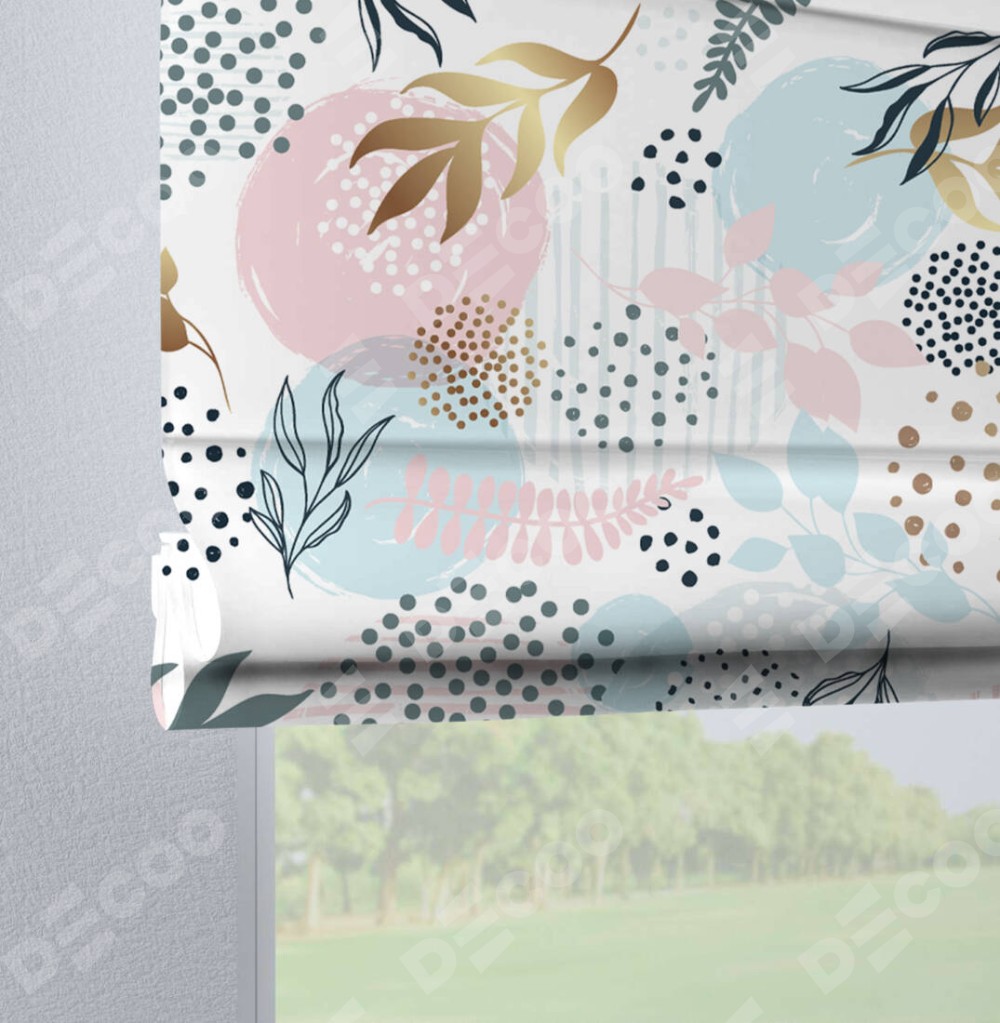 Римская штора производителя «Cortin», используется для проёма, пошита из ткани блэкаут с нанесением сублимационной печати «Точки и листочки». Данная модель пошита на петлях, комплектуется на выбор круглым карнизом и подходит для монтажа на стену. Римская штора на петлях имеет простую систему регулировки высоты, отличительным преимуществом данной модели является простой способ монтажа. Достаточно повесить ее на трубу и штора готова!