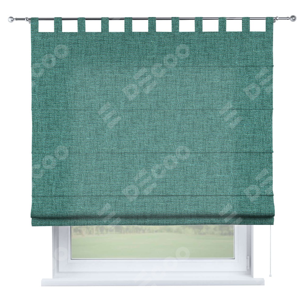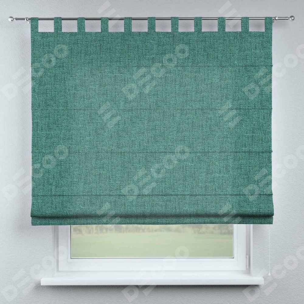 Римская штора на петлях «Кортин», ткань лён кашемир бирюзовый