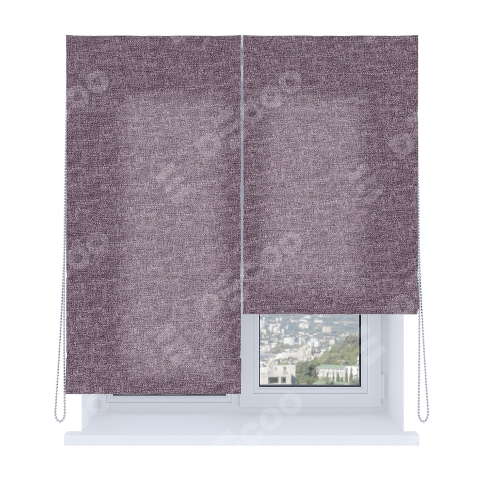 Римская штора производителя «Cortin», используется для проёма, пошита из ткани лён кашемир фиолетовый, артикул ткани 17211. Имеет универсальный механизм и подходит для монтажа: на потолок, на стену и в нишу. Удобное управление каждой шторой отдельно.