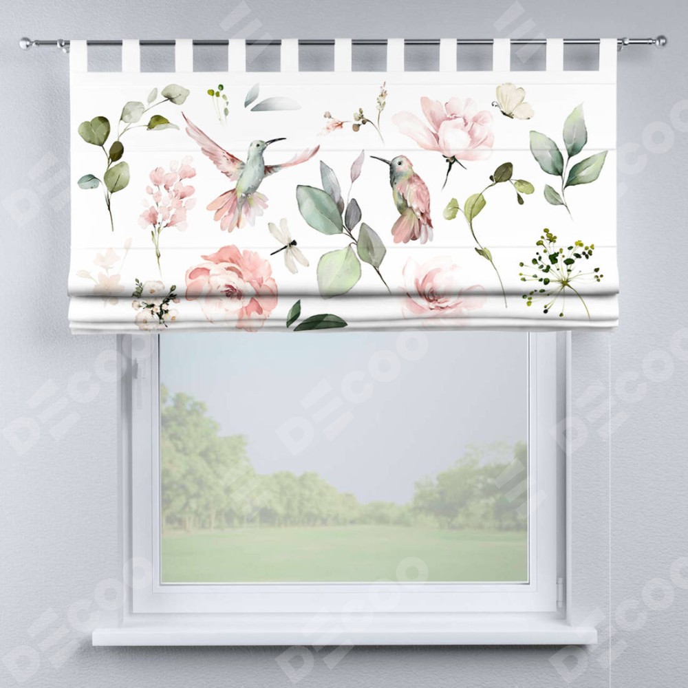 Римская штора производителя «Cortin», используется для проёма, пошита из ткани блэкаут с нанесением сублимационной печати «Уютный сад». Данная модель пошита на петлях, комплектуется на выбор круглым карнизом и подходит для монтажа на стену. Римская штора на петлях имеет простую систему регулировки высоты, отличительным преимуществом данной модели является простой способ монтажа. Достаточно повесить ее на трубу и штора готова!