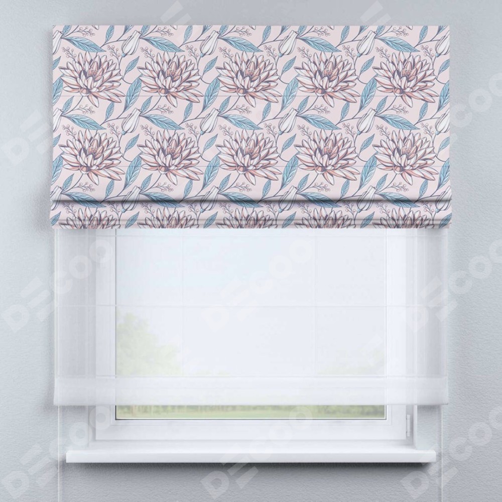 Римская штора день-ночь производителя «Cortin», используется для проёма, пошита из двух полотен, с лицевой блэкаут с нанесением сублимационной печати «Романтический день», вторая ткань тюль (по стандарту комплектуется тюль белого цвета артикул V-01). Имеет универсальный механизм и подходит для монтажа: на потолок, на стену и в нишу.