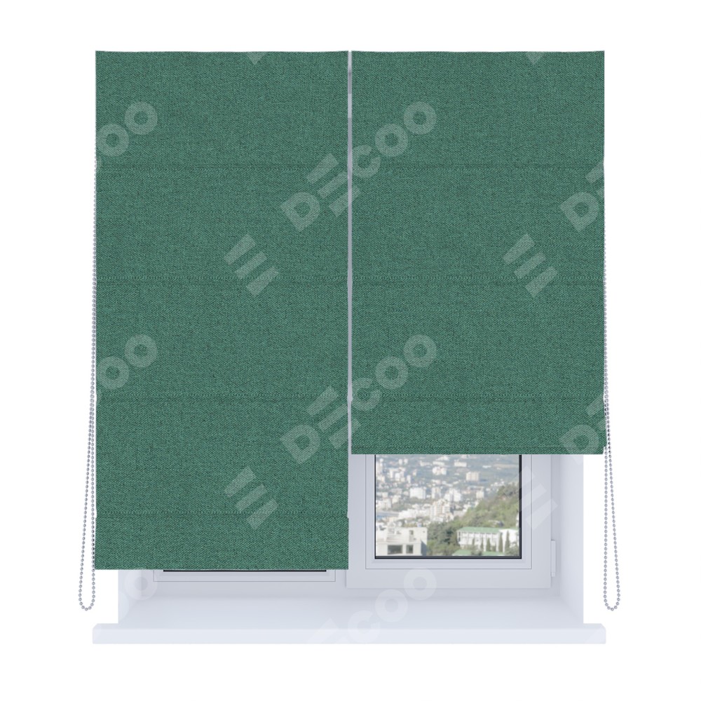 Римская штора производителя «Cortin», используется для проёма, пошита из ткани лён блэкаут бирюзовый, артикул ткани 69517. Имеет универсальный механизм и подходит для монтажа: на потолок, на стену и в нишу. Удобное управление каждой шторой отдельно.