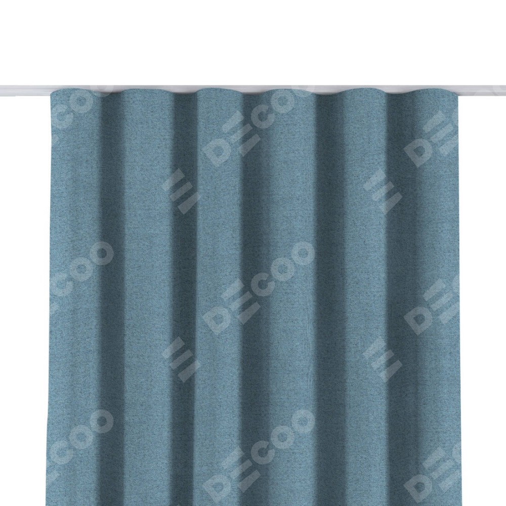 Комплект прямых штор, от производителя «Cortin», пошиты из ткани лён блэкаут голубой, артикул ткани 69574. С изнаночной стороны в верхней части штор пристрачивается шторная лента с декоративными складками «Волна». Для создания элегантных складок прямые шторы шьются по стандарту с коэффициентом 1:2 (на 100 см. ширины проёма 200 см. ширины ткани).