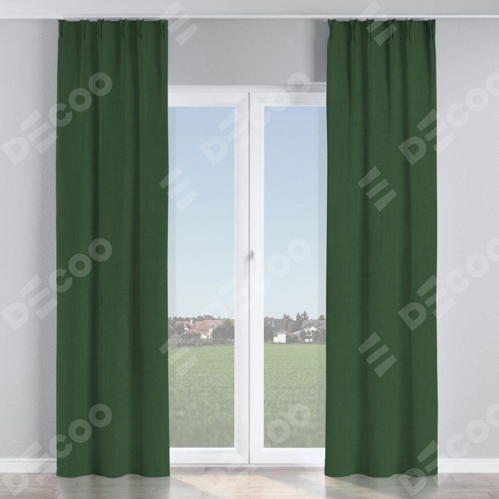 Комплект прямых штор, от производителя «Cortin», пошиты из ткани лён блэкаут зелёный, артикул ткани 69497. С изнаночной стороны в верхней части штор пристрачивается шторная лента с декоративными складками «Кустик». Для создания элегантных складок прямые шторы шьются по стандарту с коэффициентом 1:2 (на 100 см. ширины проёма 200 см. ширины ткани).