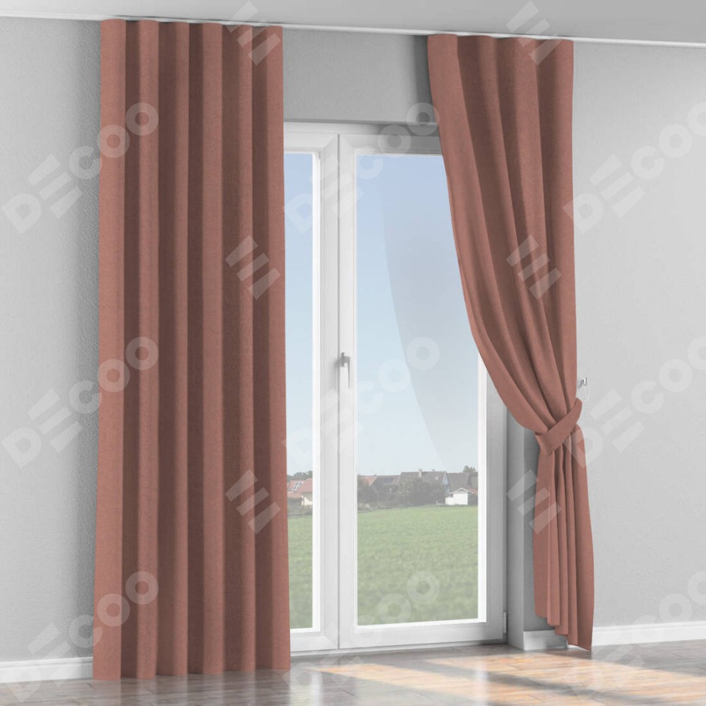 Комплект прямых штор, от производителя «Cortin», пошиты из ткани лён блэкаут розовый, артикул ткани 69575. С изнаночной стороны в верхней части штор пристрачивается шторная лента с декоративными складками «Волна». Для создания элегантных складок прямые шторы шьются по стандарту с коэффициентом 1:2 (на 100 см. ширины проёма 200 см. ширины ткани).