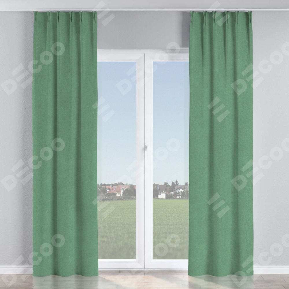 Комплект прямых штор, от производителя «Cortin», пошиты из ткани лён блэкаут светло-бирюзовый, артикул ткани 69443. С изнаночной стороны в верхней части штор пристрачивается шторная лента с декоративными складками «Кустик». Для создания элегантных складок прямые шторы шьются по стандарту с коэффициентом 1:2 (на 100 см. ширины проёма 200 см. ширины ткани).