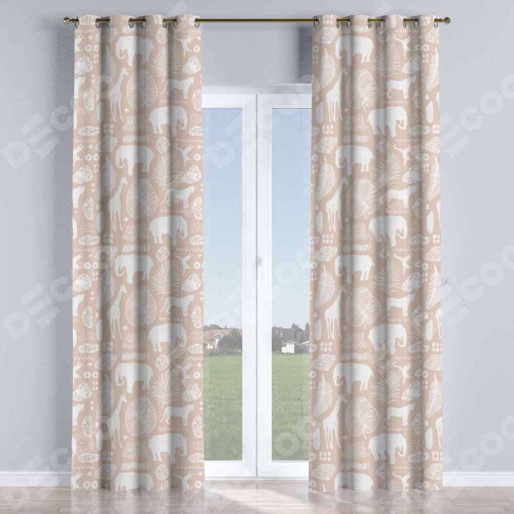 Комплект прямых штор, от производителя «Cortin», пошиты из ткани блэкаут с нанесением сублимационной печати «Африканские животные». Данная модель пошита на люверсах, комплектуется на выбор круглым карнизом и подходит для монтажа на стену или потолок. Прямые шторы на люверсах шьются по стандарту с коэффициентом 1/2 (на 100 см. ширины проёма 200 см. ширины ткани), отличительным преимуществом данной модели является простой способ монтажа. Достаточно повесить ее на трубу и штора готова!