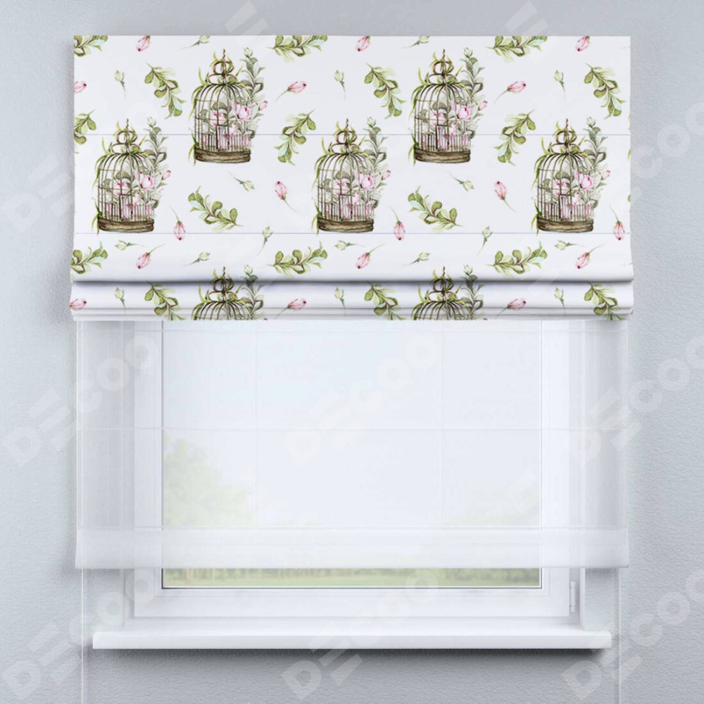 Римская штора день-ночь производителя «Cortin», используется для проёма, пошита из двух полотен, с лицевой блэкаут с нанесением сублимационной печати «Летний прованс», вторая ткань тюль (по стандарту комплектуется тюль белого цвета артикул V-01). Имеет универсальный механизм и подходит для монтажа: на потолок, на стену и в нишу.
