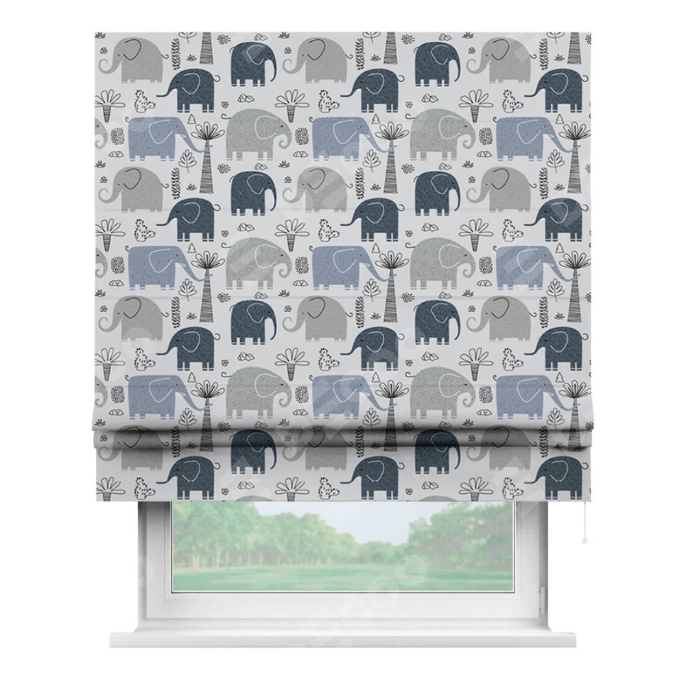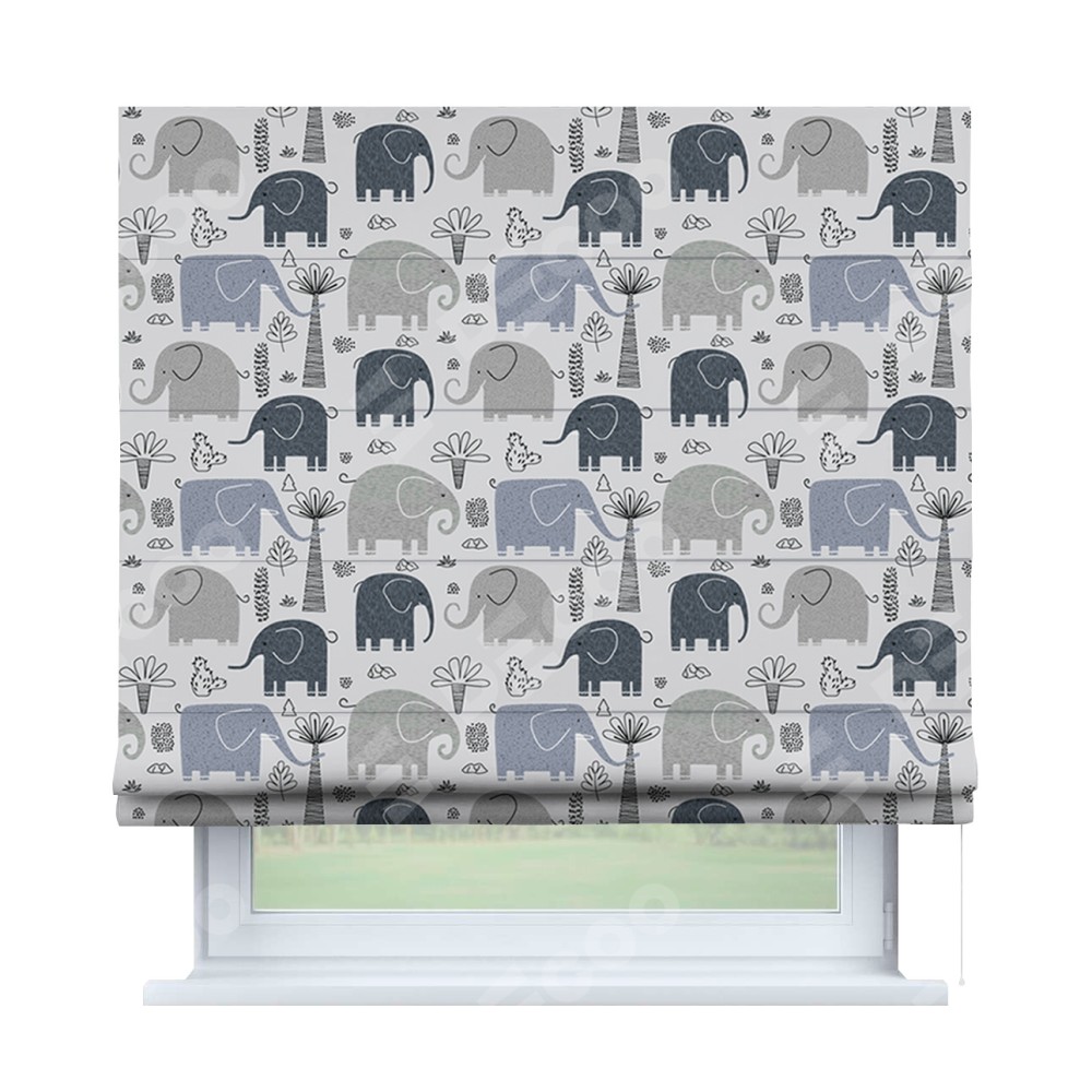 Римская штора «Кортин» для проема «Серые слоники»