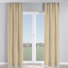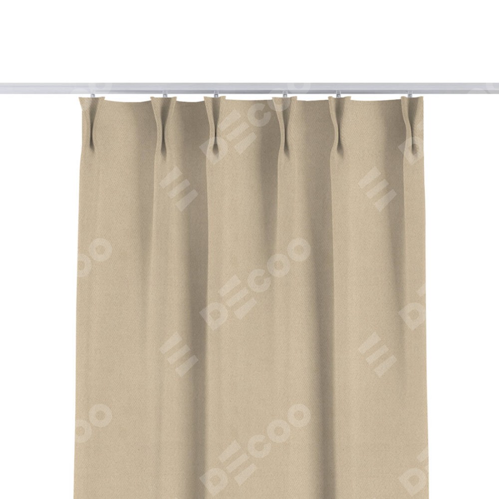 Комплект прямых штор, от производителя «Cortin», пошиты из ткани блэкаут однотонный кофейно-бежевый, артикул ткани 12095−1. С изнаночной стороны в верхней части штор пристрачивается шторная лента с декоративными складками «Кустик». Для создания элегантных складок прямые шторы шьются по стандарту с коэффициентом 1:2 (на 100 см. ширины проёма 200 см. ширины ткани).