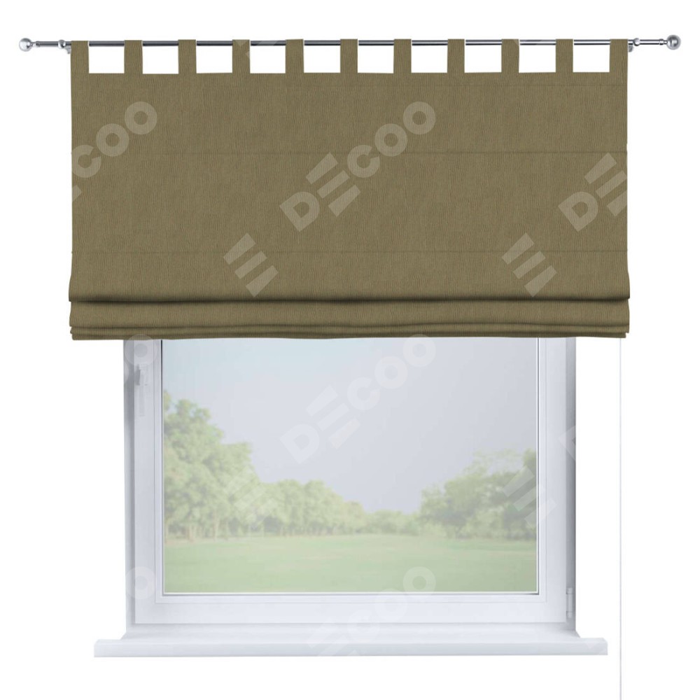 Римская штора производителя «Cortin», используется для проёма, пошита из ткани блэкаут однотонный бежево-золотой, артикул ткани 12095−2. Данная модель пошита на петлях, комплектуется на выбор круглым карнизом и подходит для монтажа на стену. Римская штора на петлях имеет простую систему регулировки высоты, отличительным преимуществом данной модели является простой способ монтажа. Достаточно повесить ее на трубу и штора готова!
