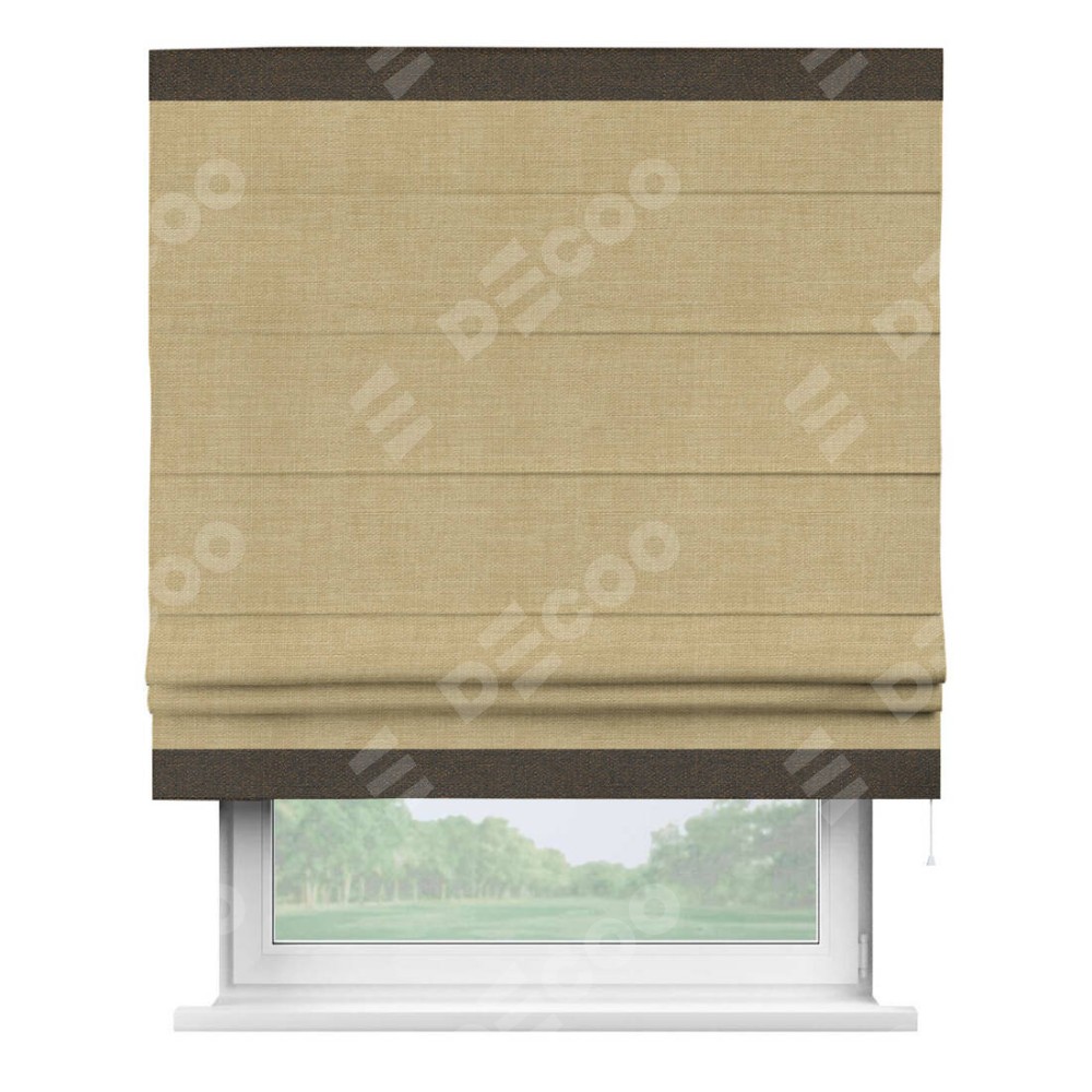 Римская штора «Кортин» с кантом Горизонт, для проема, ткань лён бежевый