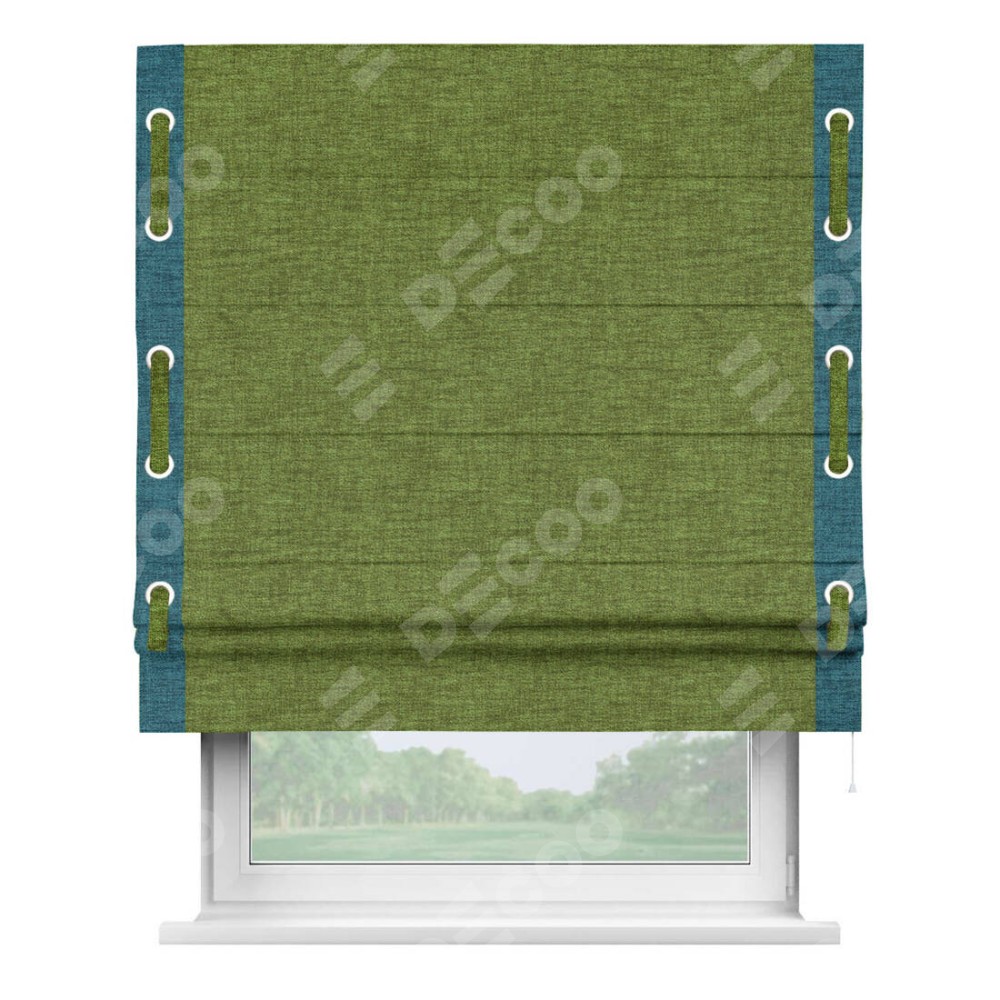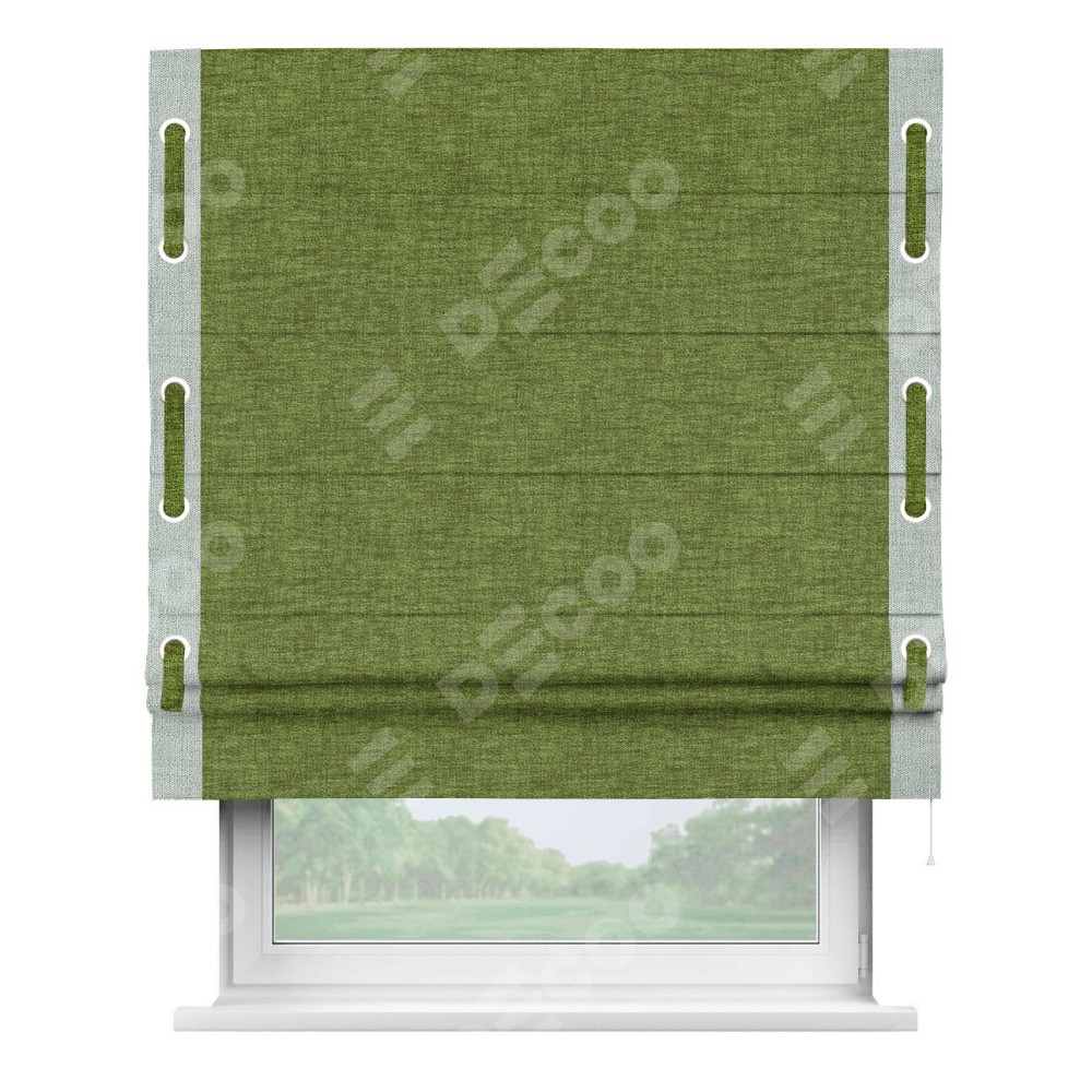 Римская штора «Кортин» с кантом Стрим Дуо (люверсы с пояском), для проема, ткань рогожка димаут, салатовый
