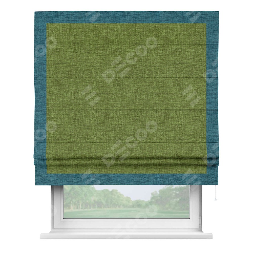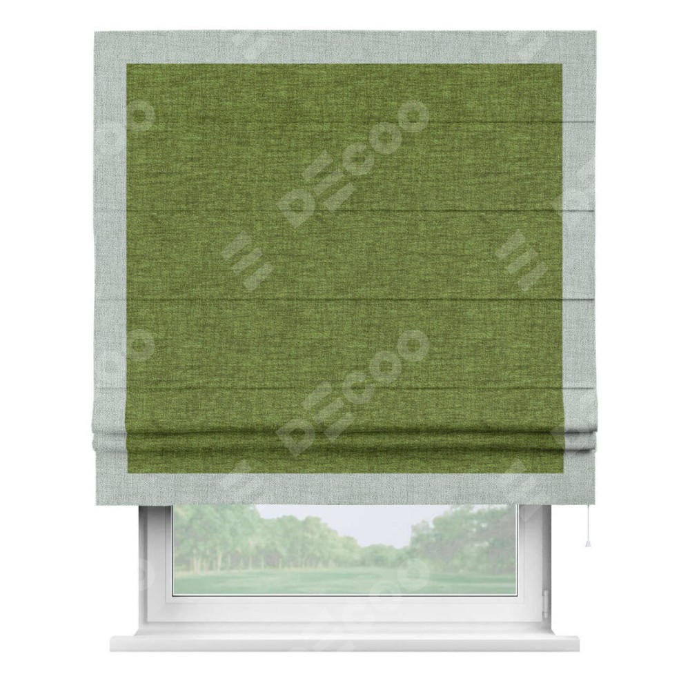 Римская штора «Кортин» с кантом Чесс, для проема, ткань рогожка димаут, салатовый