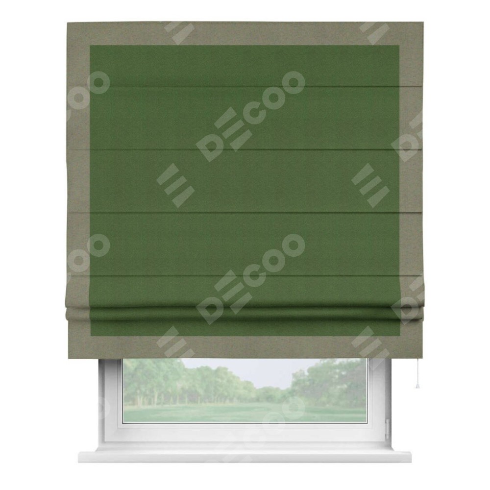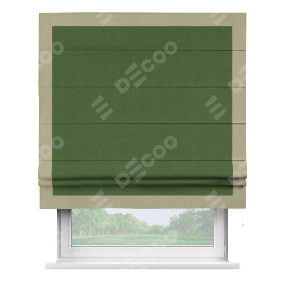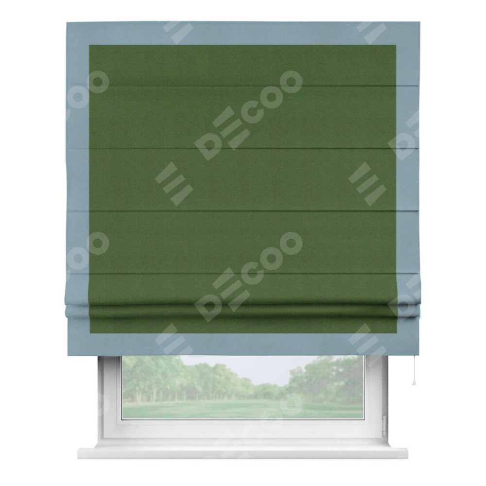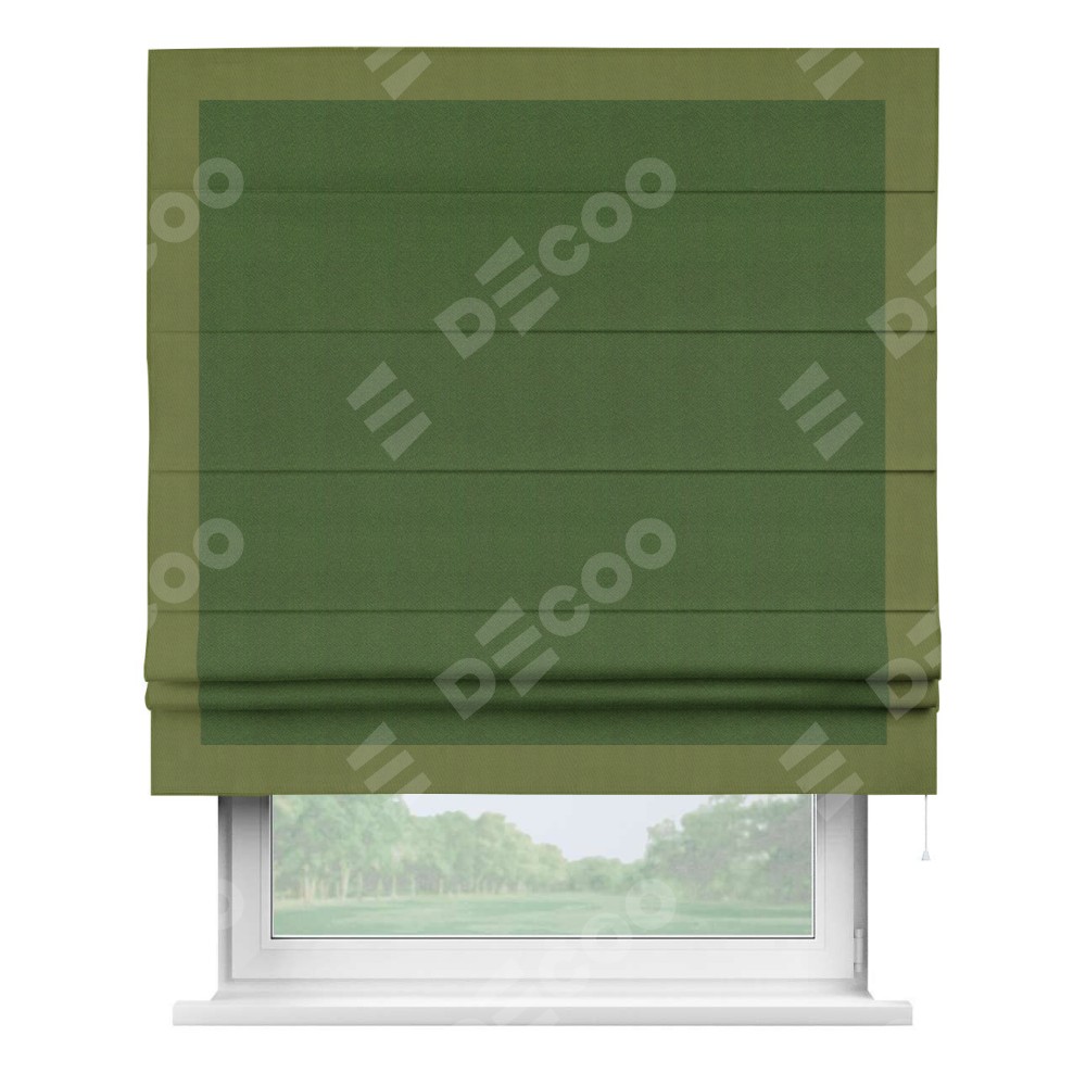 Римская штора «Кортин» с кантом Чесс, для проема, ткань блэкаут однотонный зелёный перламутр