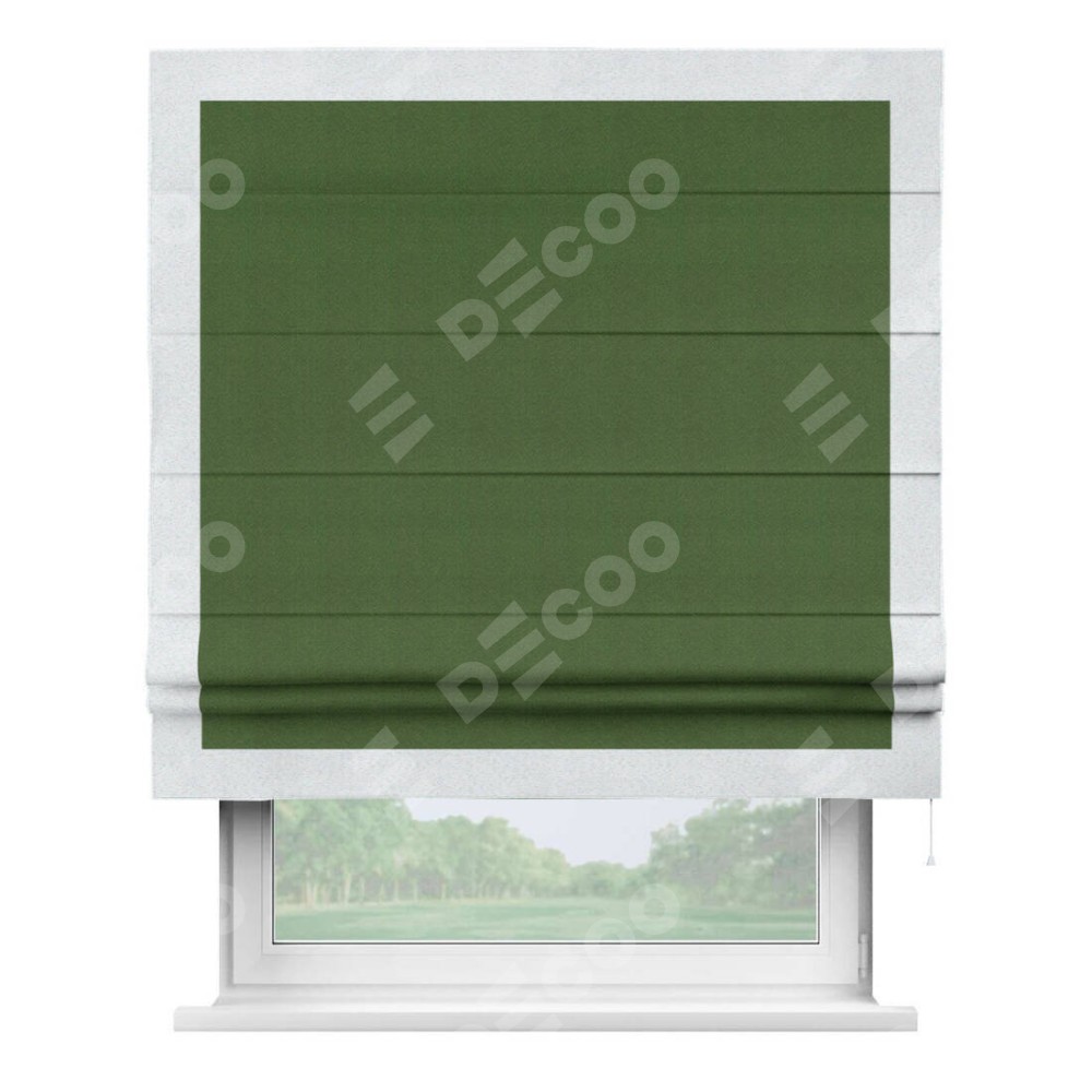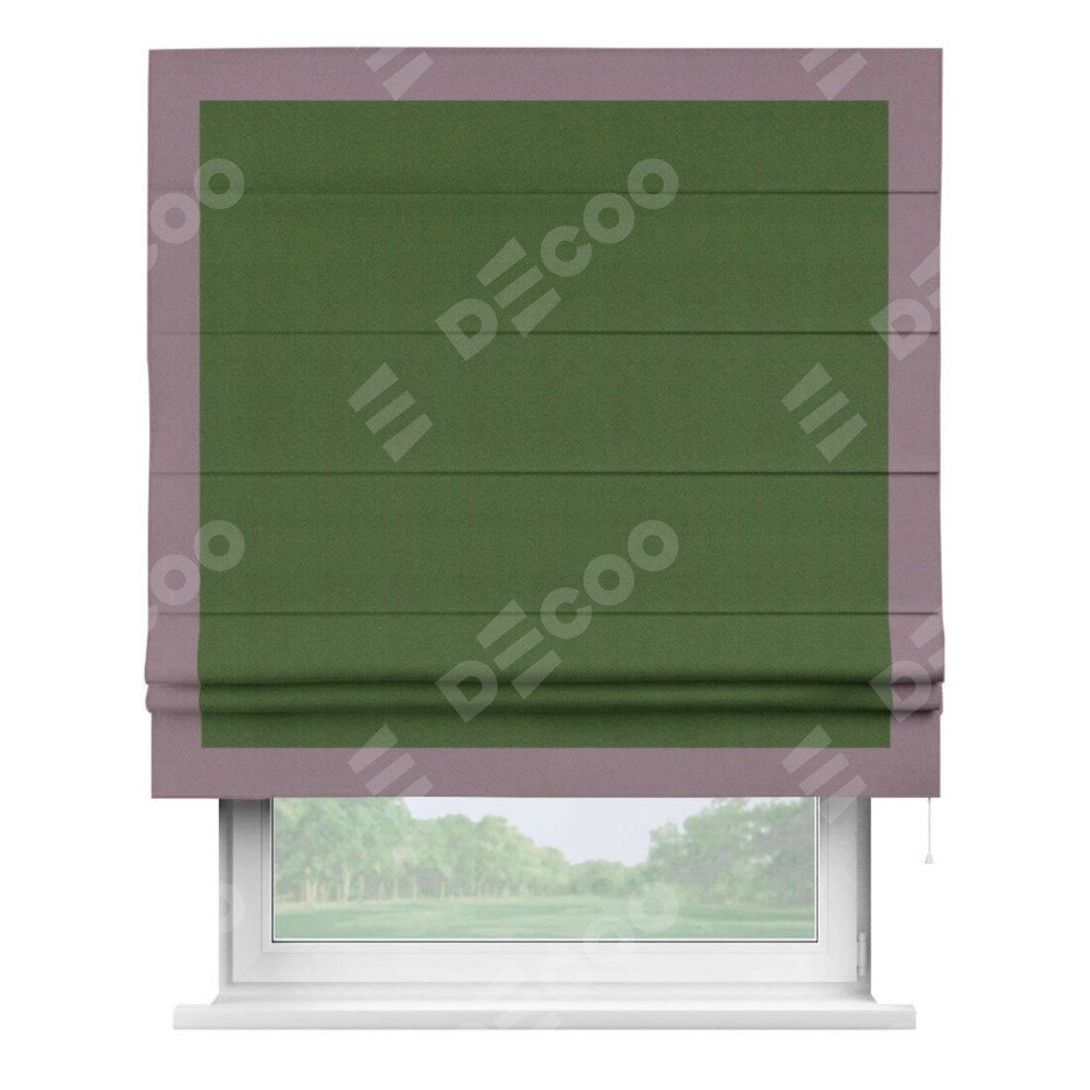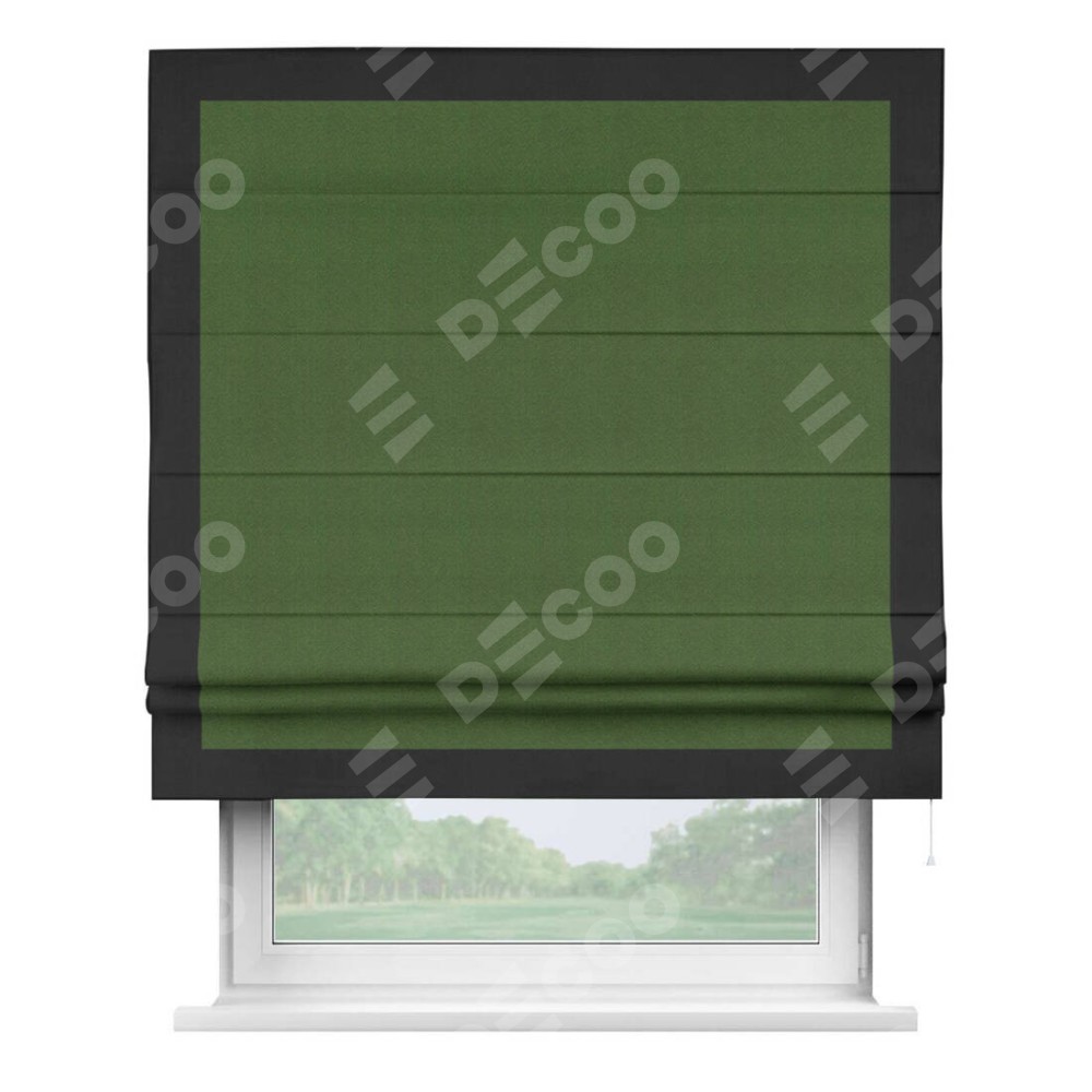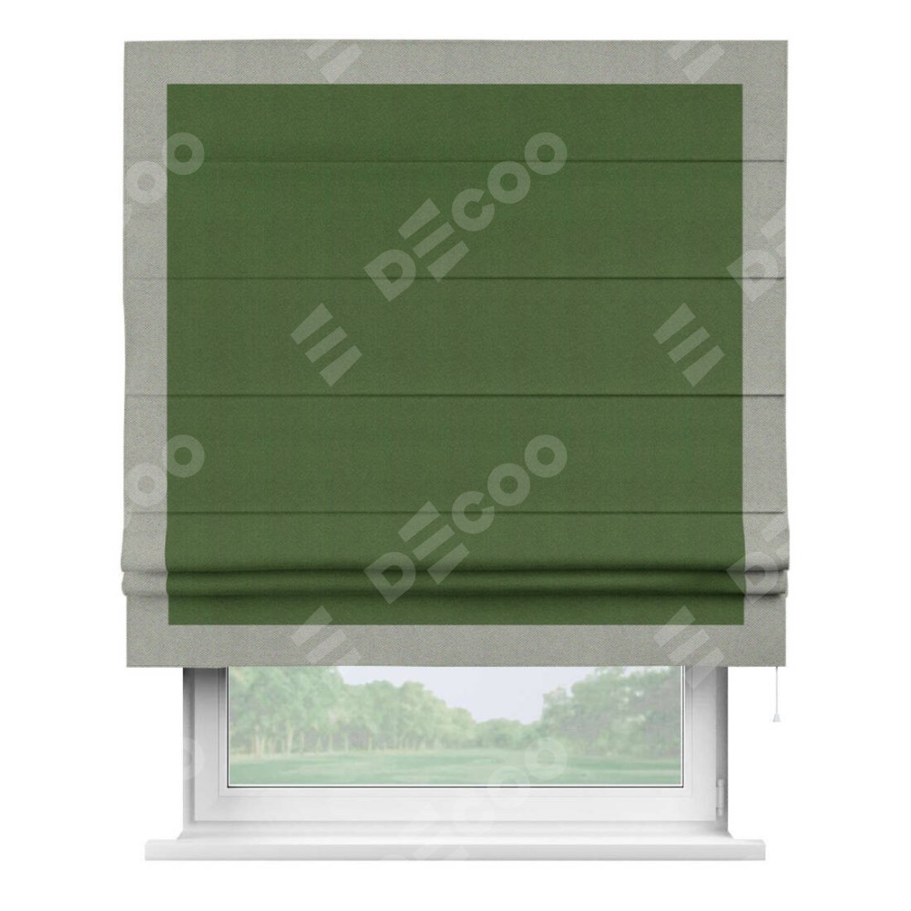 Римская штора «Кортин» с кантом Чесс, для проема, ткань блэкаут однотонный зелёный перламутр