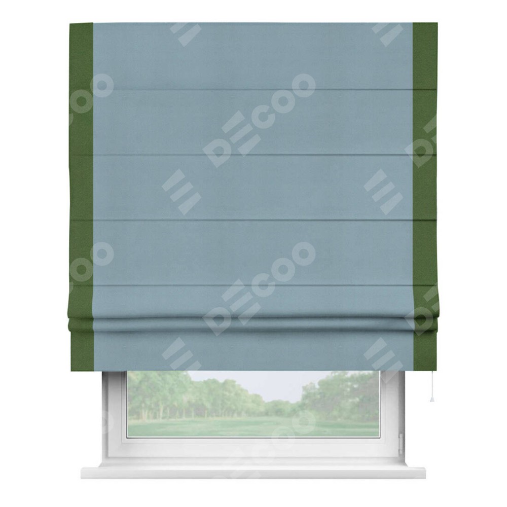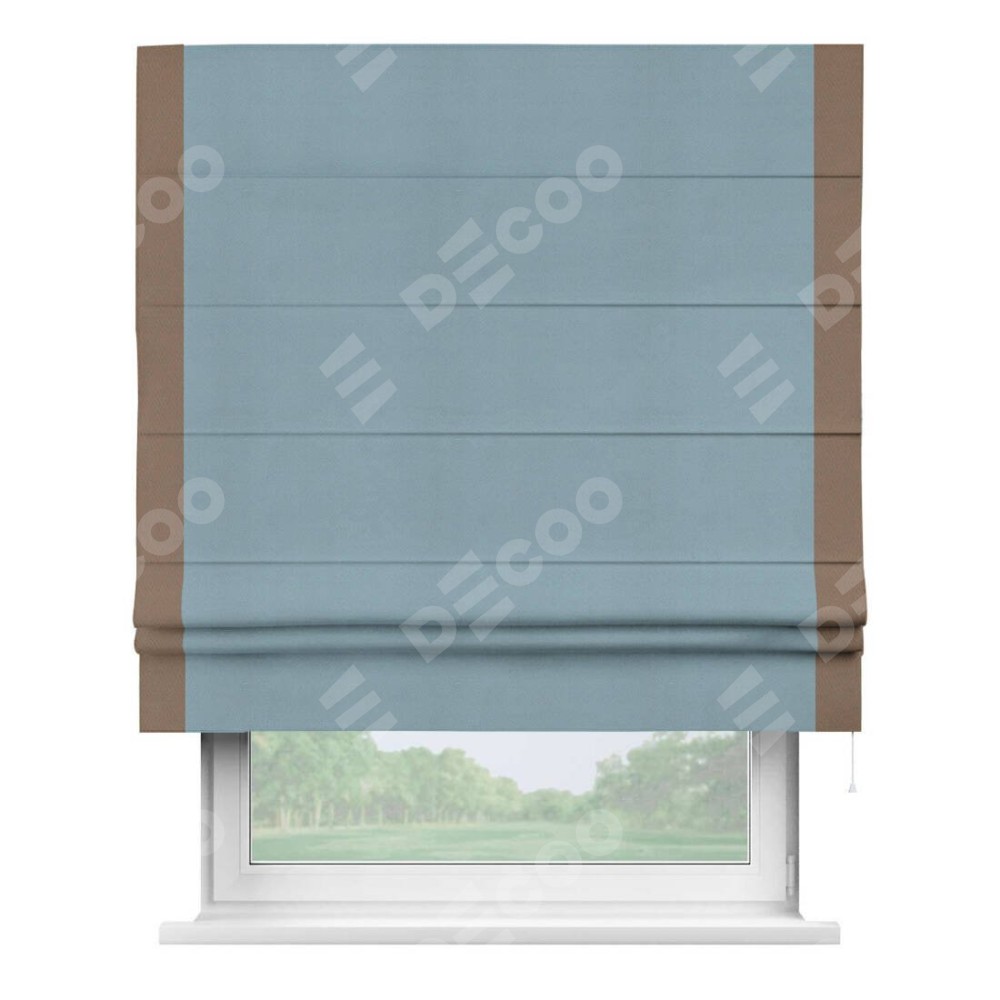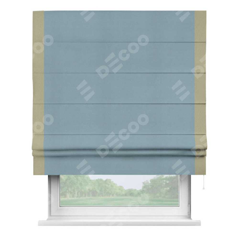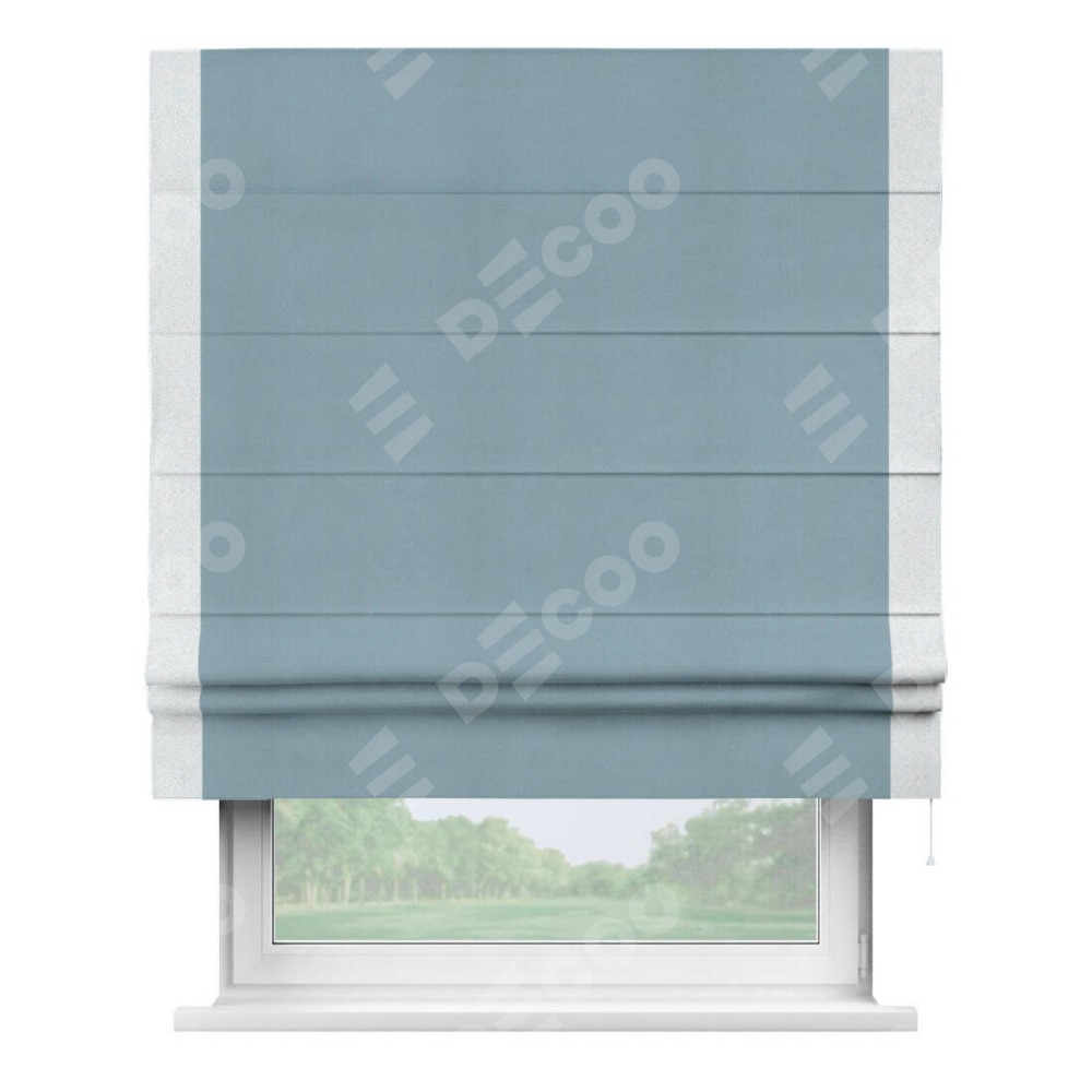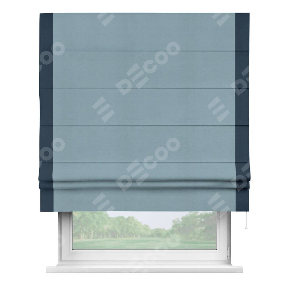 Римская штора «Кортин» с кантом Стрим Дуо, для проема, ткань блэкаут однотонный серо-голубой
