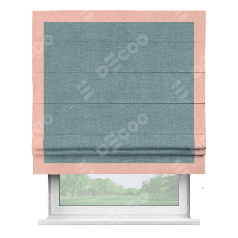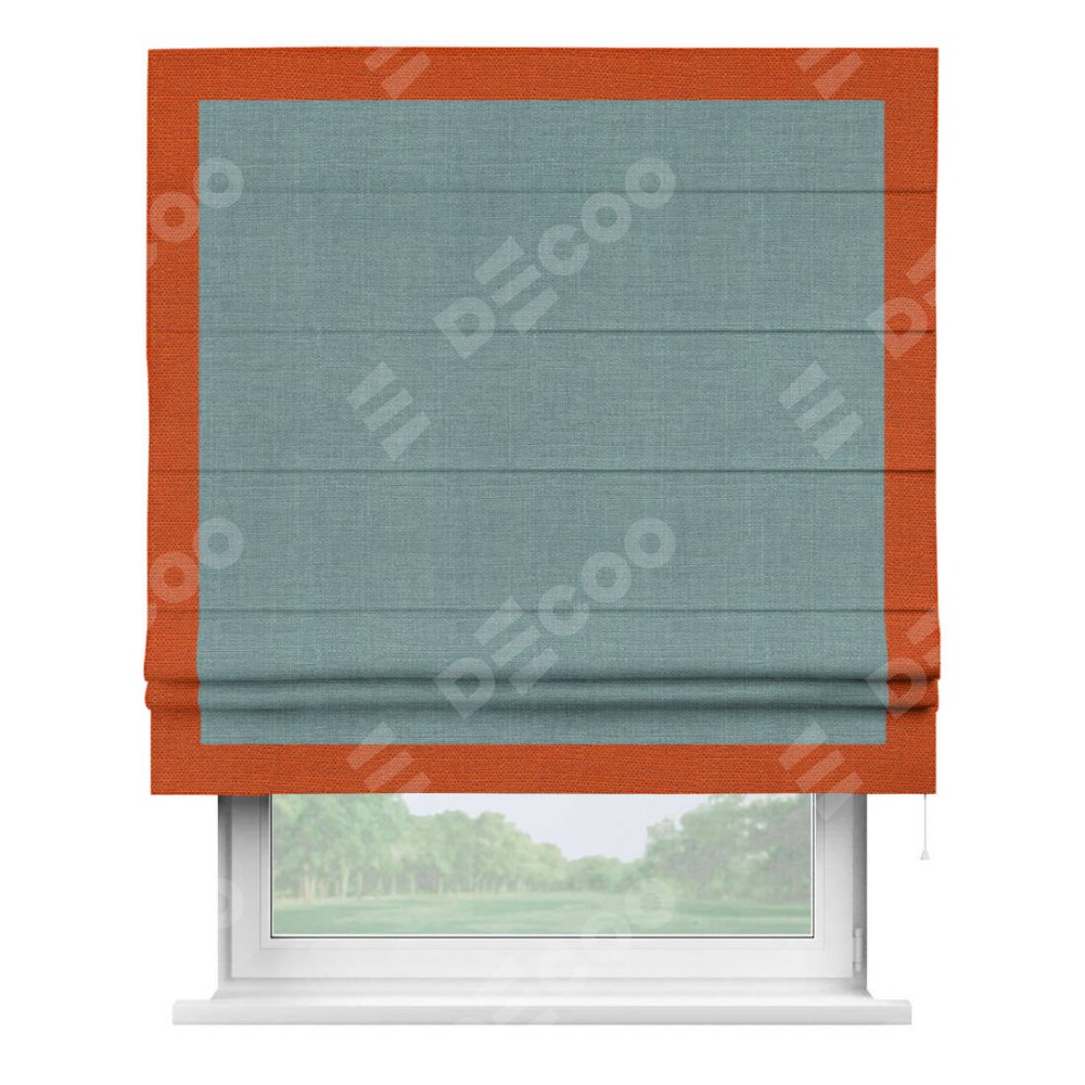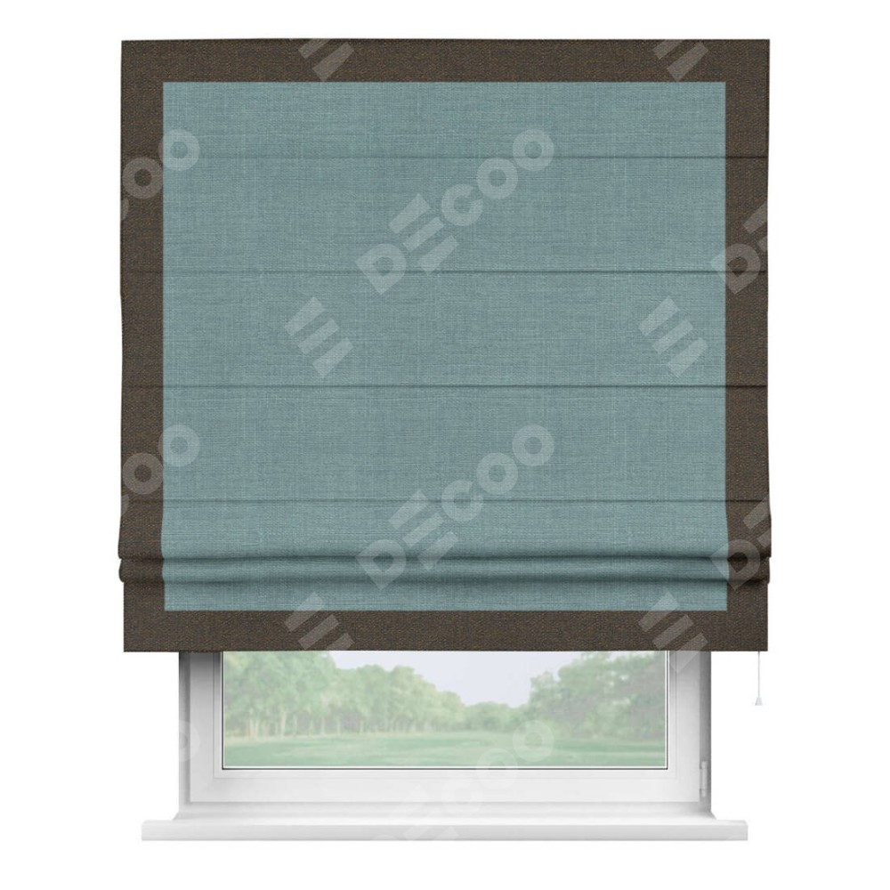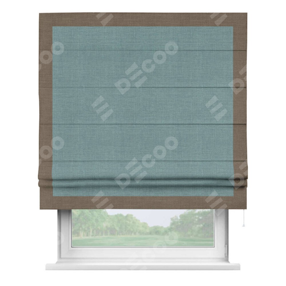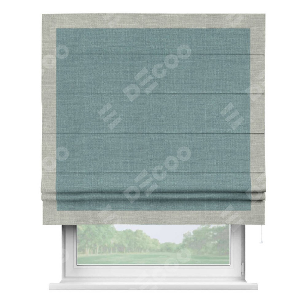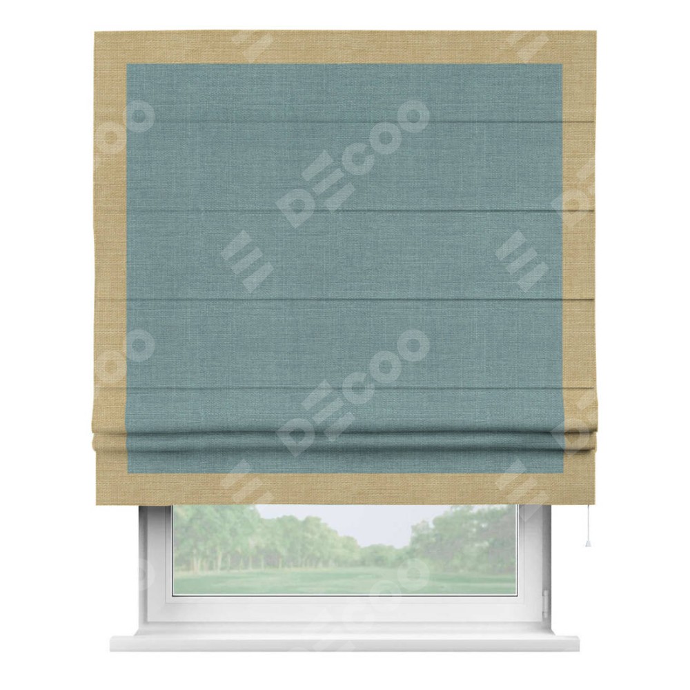 Римская штора «Кортин» с кантом Чесс, для проема, лён, цвет голубой