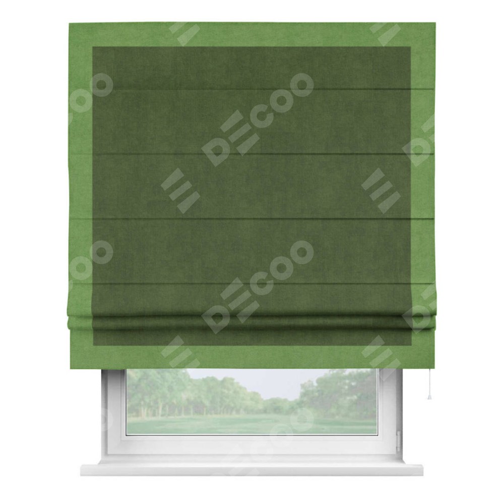 Римская штора «Кортин» с кантом Чесс, для проема, ткань вельвет тёмно-салатовый