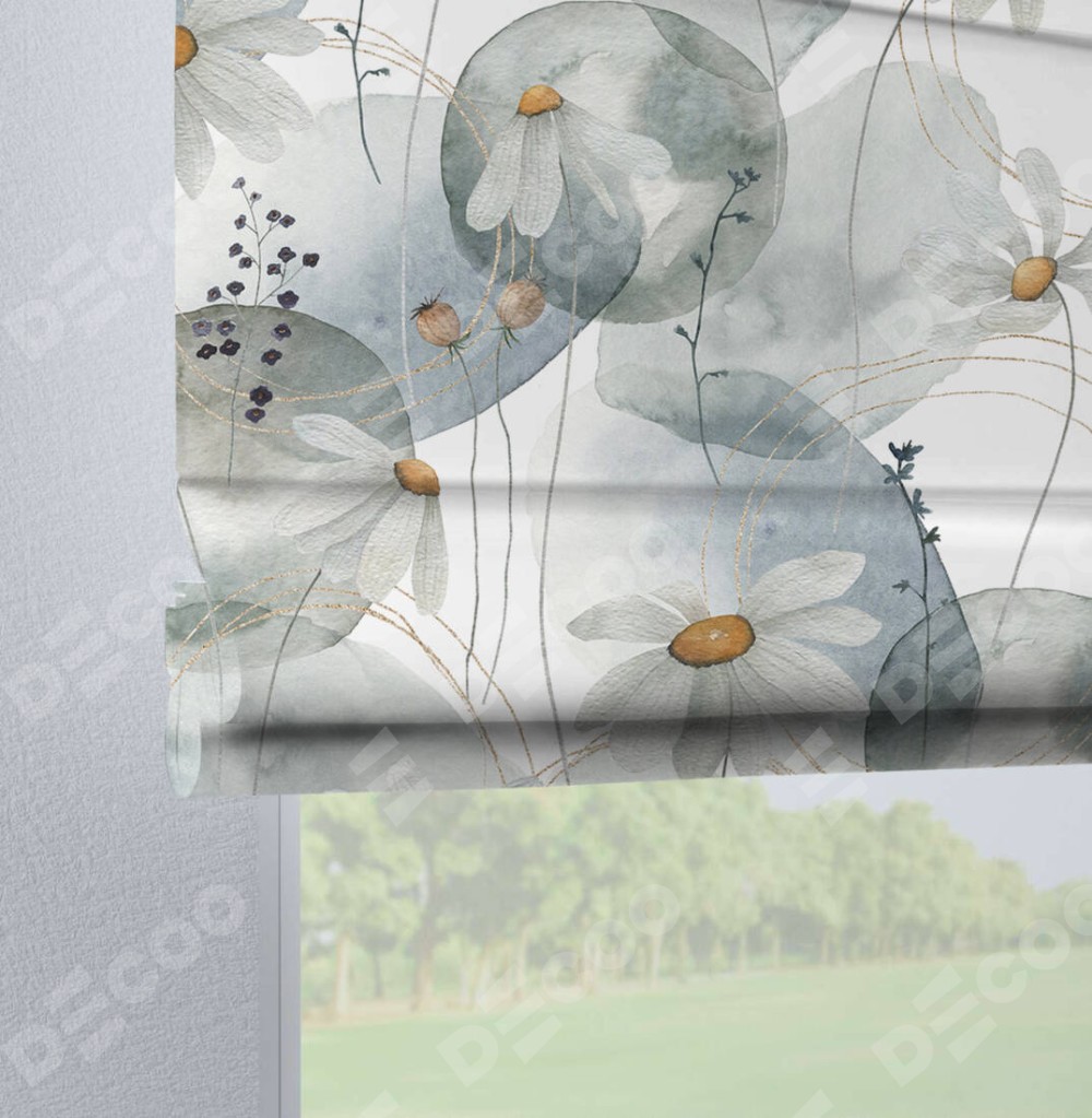Римская штора на петлях «Ромашки акварель»