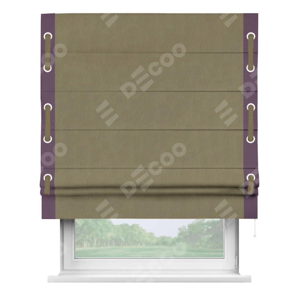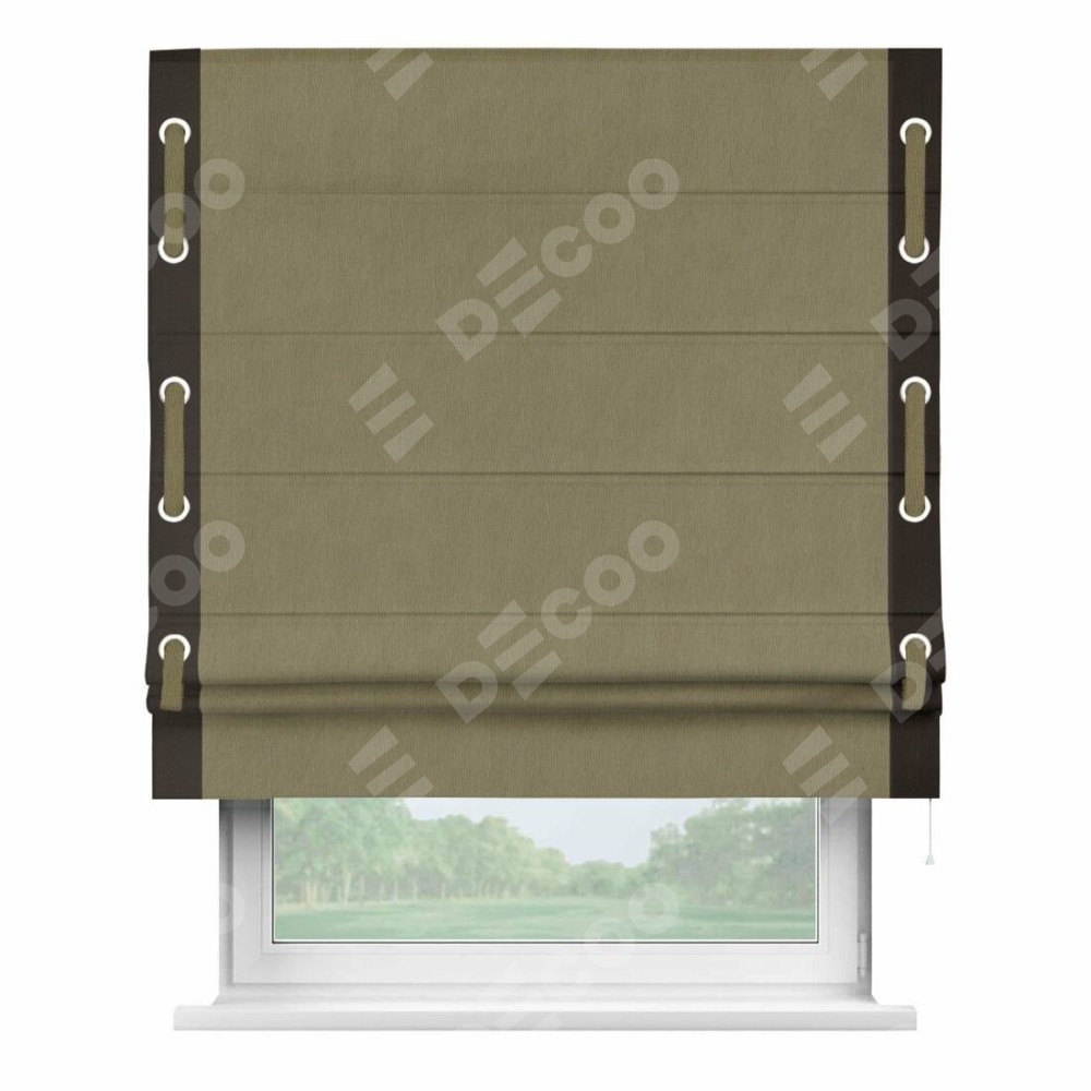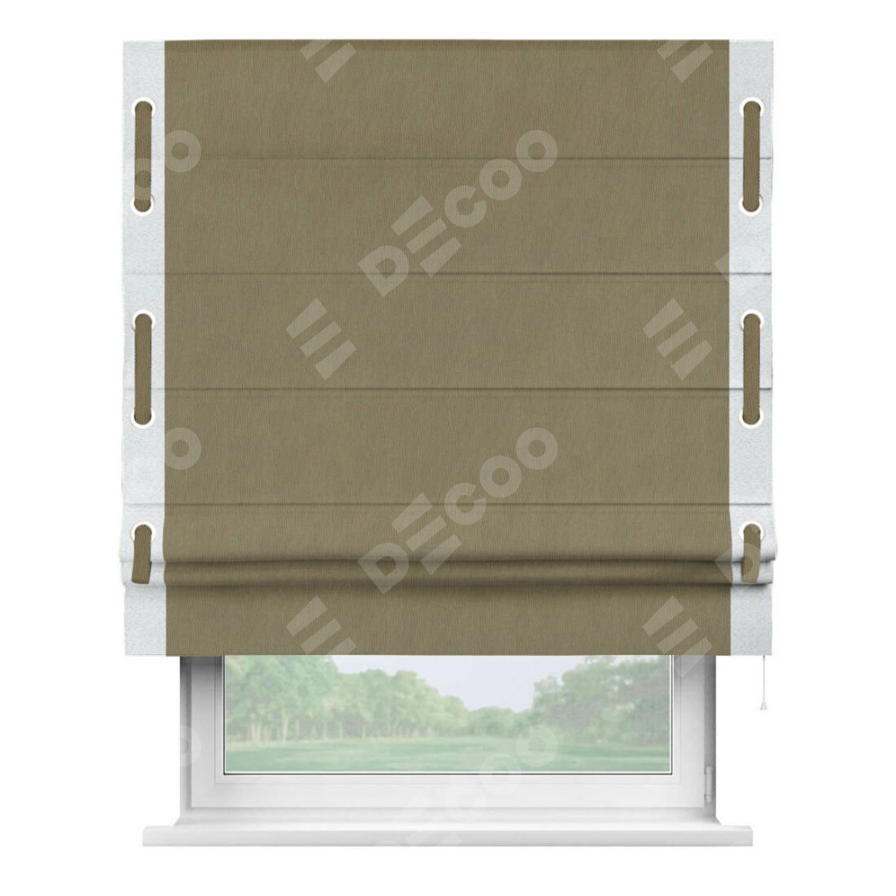 Римская штора «Кортин» с кантом Стрим Дуо (люверсы с пояском), для проема, ткань блэкаут однотонный бежево-золотой