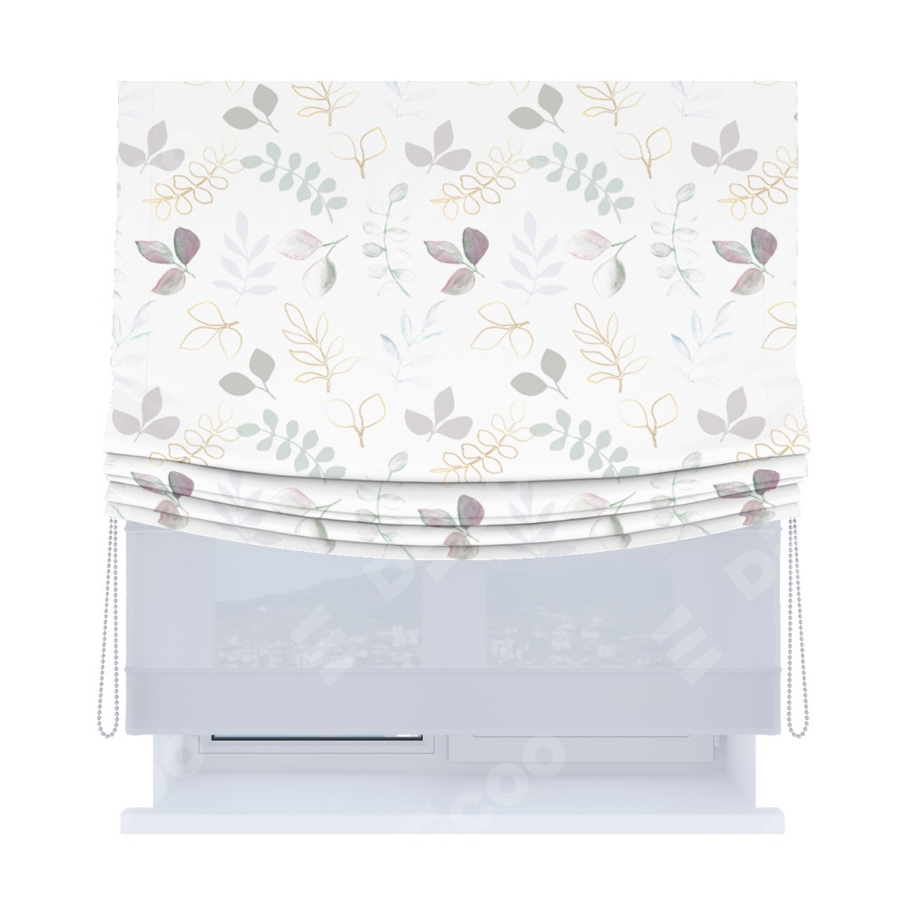 Римская штора день-ночь производителя «Cortin», используется для проёма, пошита из двух полотен, с лицевой блэкаут с нанесением сублимационной печати «Весенняя акварель», вторая ткань тюль (по стандарту комплектуется тюль белого цвета артикул V-01). Имеет универсальный механизм и подходит для монтажа: на потолок, на стену и в нишу. Удобное управление каждой шторой отдельно.